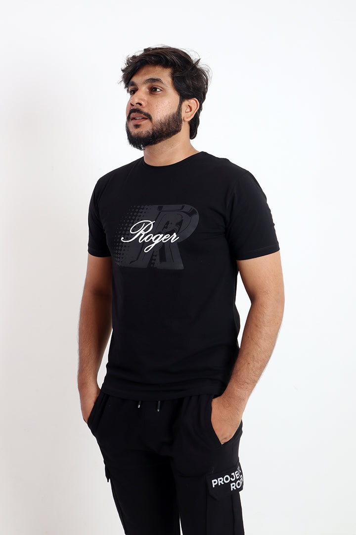 BLACK "R ROGER" PRINT T-SHIRT FOR MEN