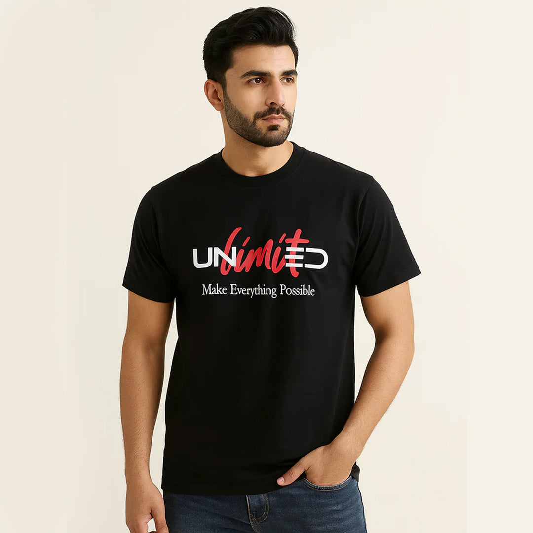 BLACK "UNLIMITED" PRINT T-SHIRT FOR MEN