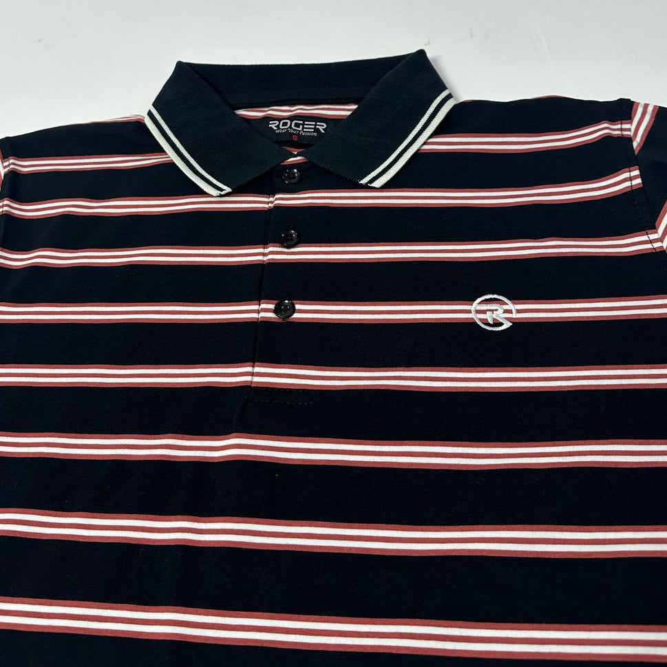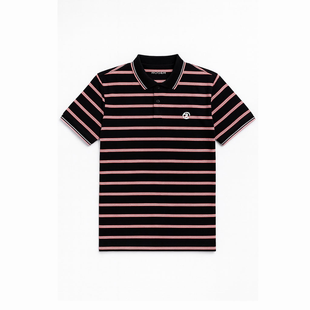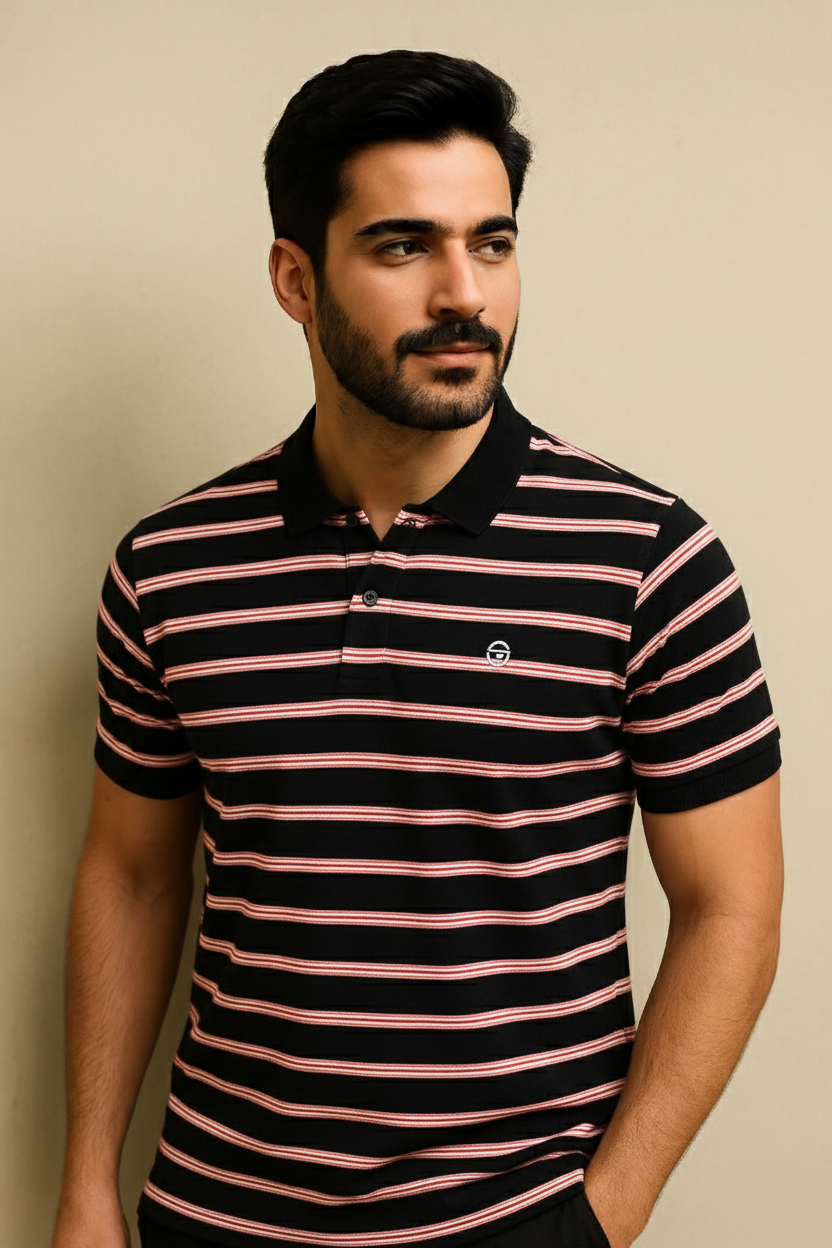 BLACK WITH BROWN & WHITE STRIPES POLO FOR MEN