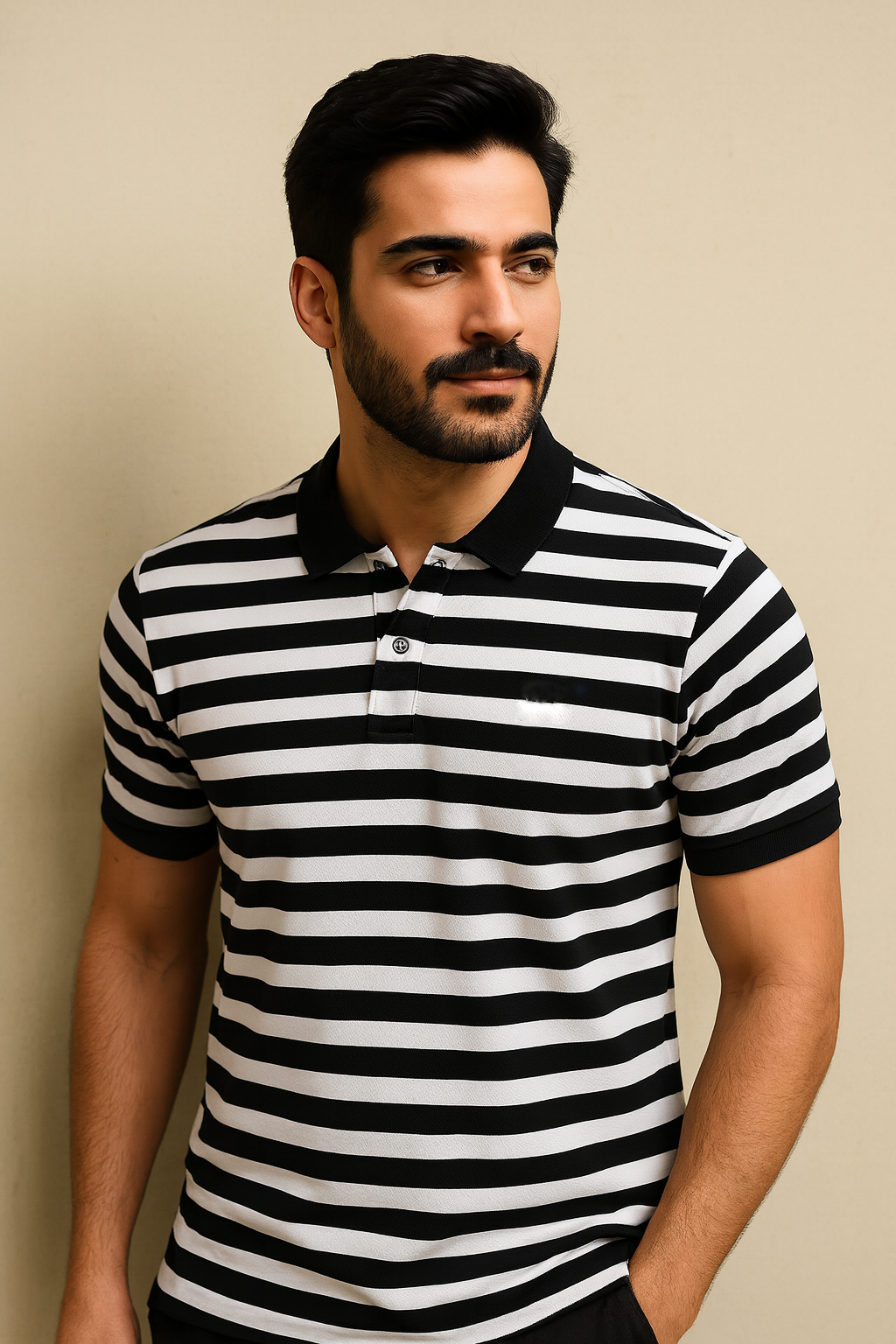 Add a splash of sailor-inspired charm with this cream polo featuring navy blue stripes. Designed for men who enjoy a playful twist on classic style, its soft fabric and bold stripes make it the perfect pick for sunny days and casual adventures. Stay comfy, look sharp, and let your outfit set sail!