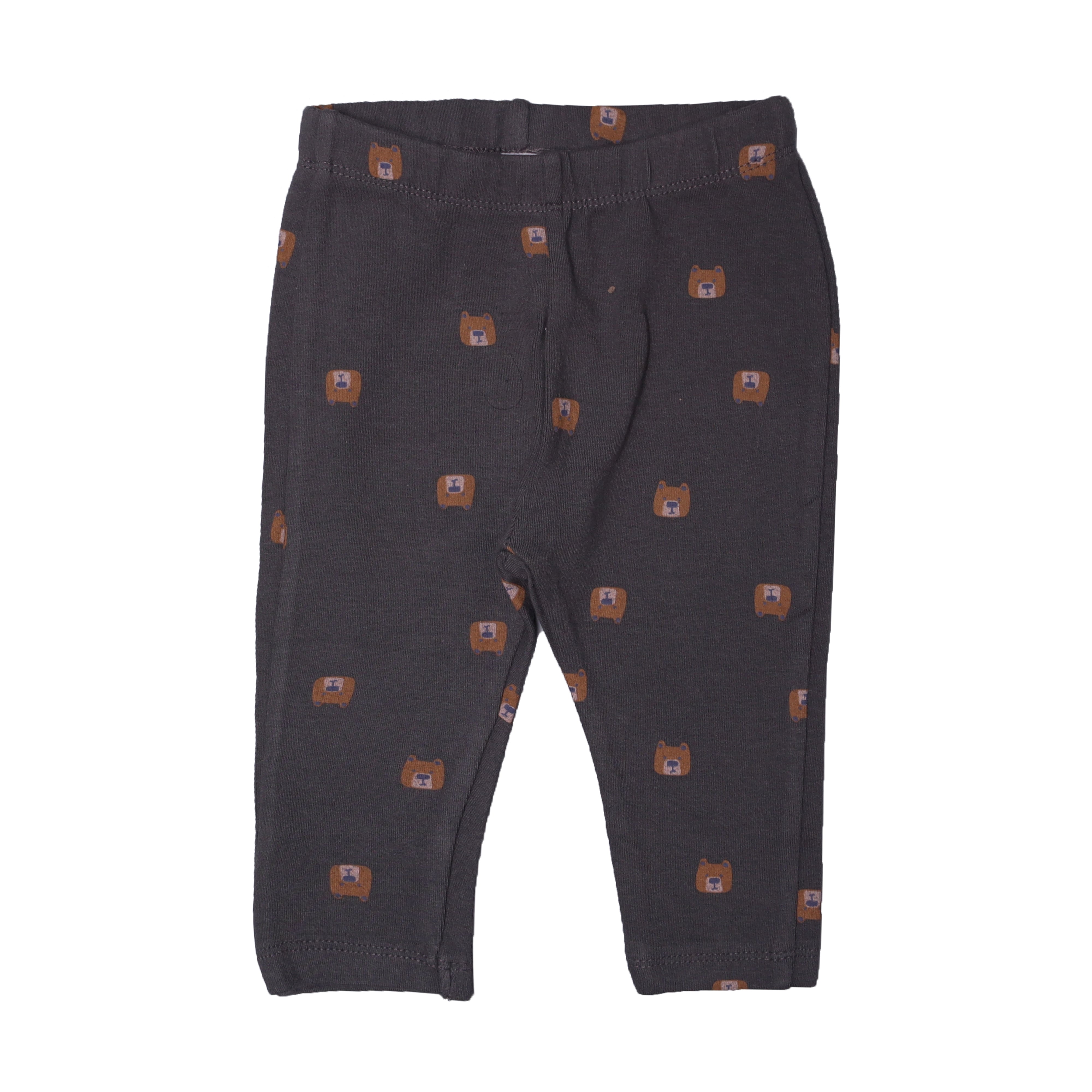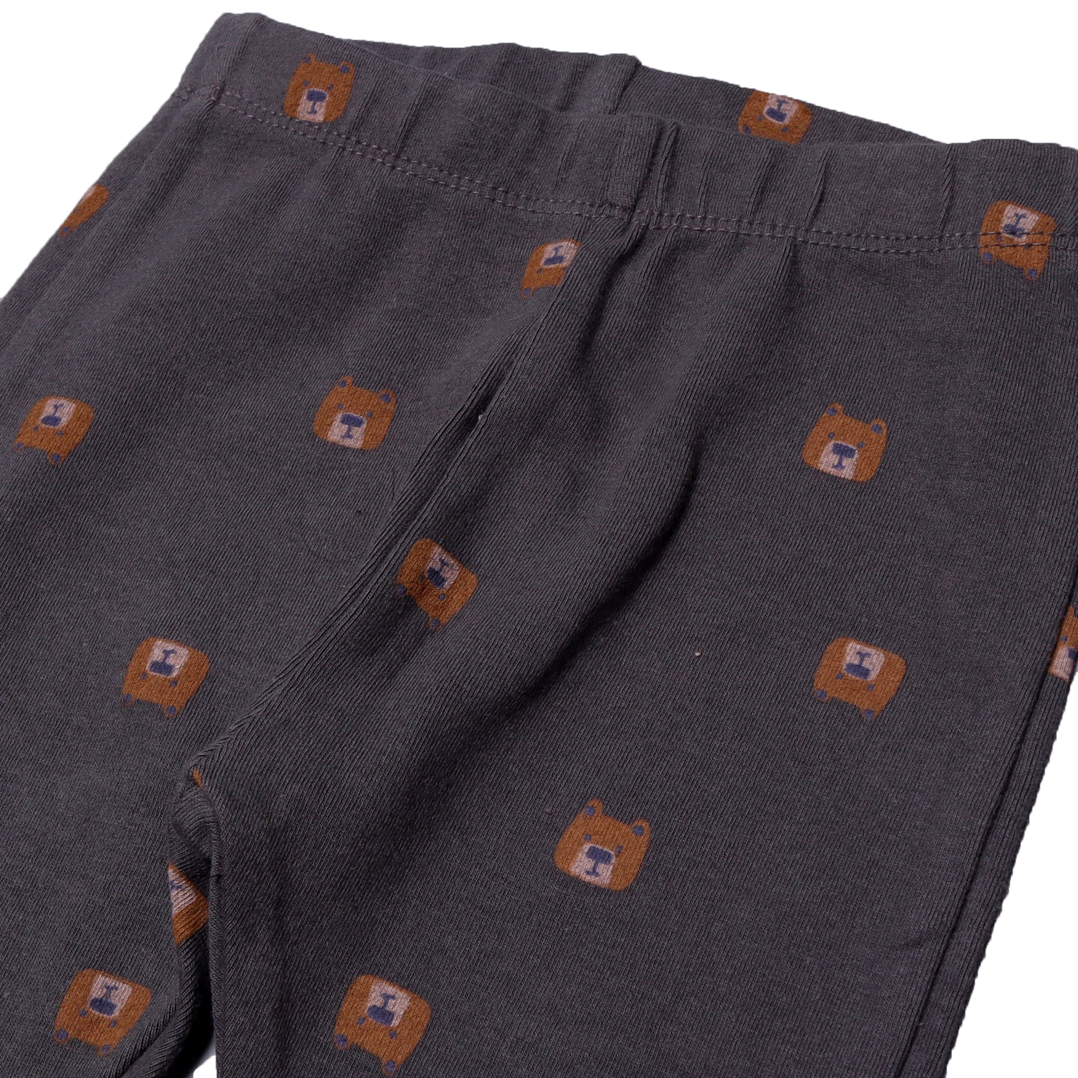 DARK GREY HEAVY RIBBED FABRIC BEAR FACE PRINTED PAJAMA / TROUSER