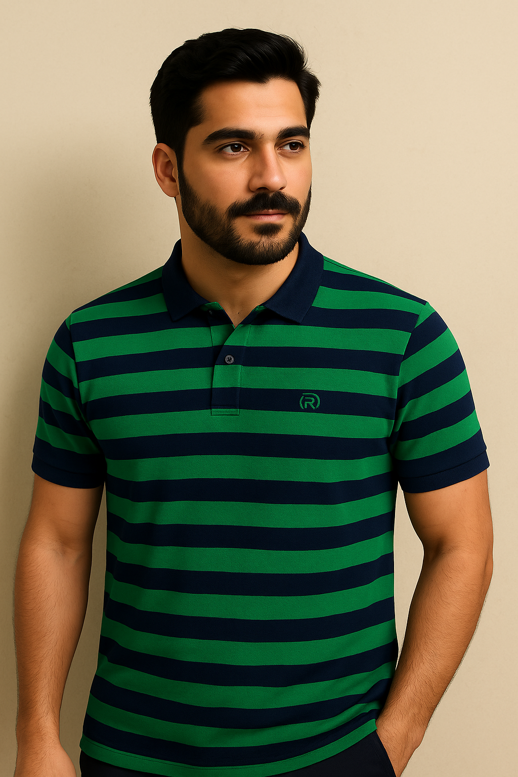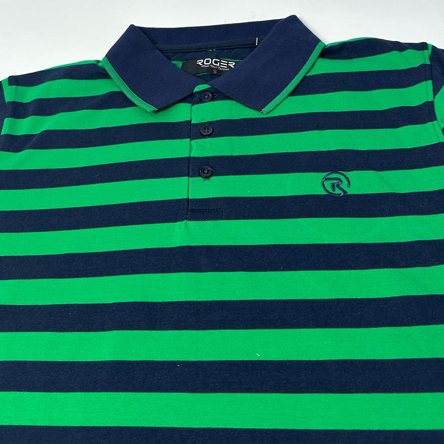 GREEN WITH NAVY BLUE STRIPES POLO FOR MEN
