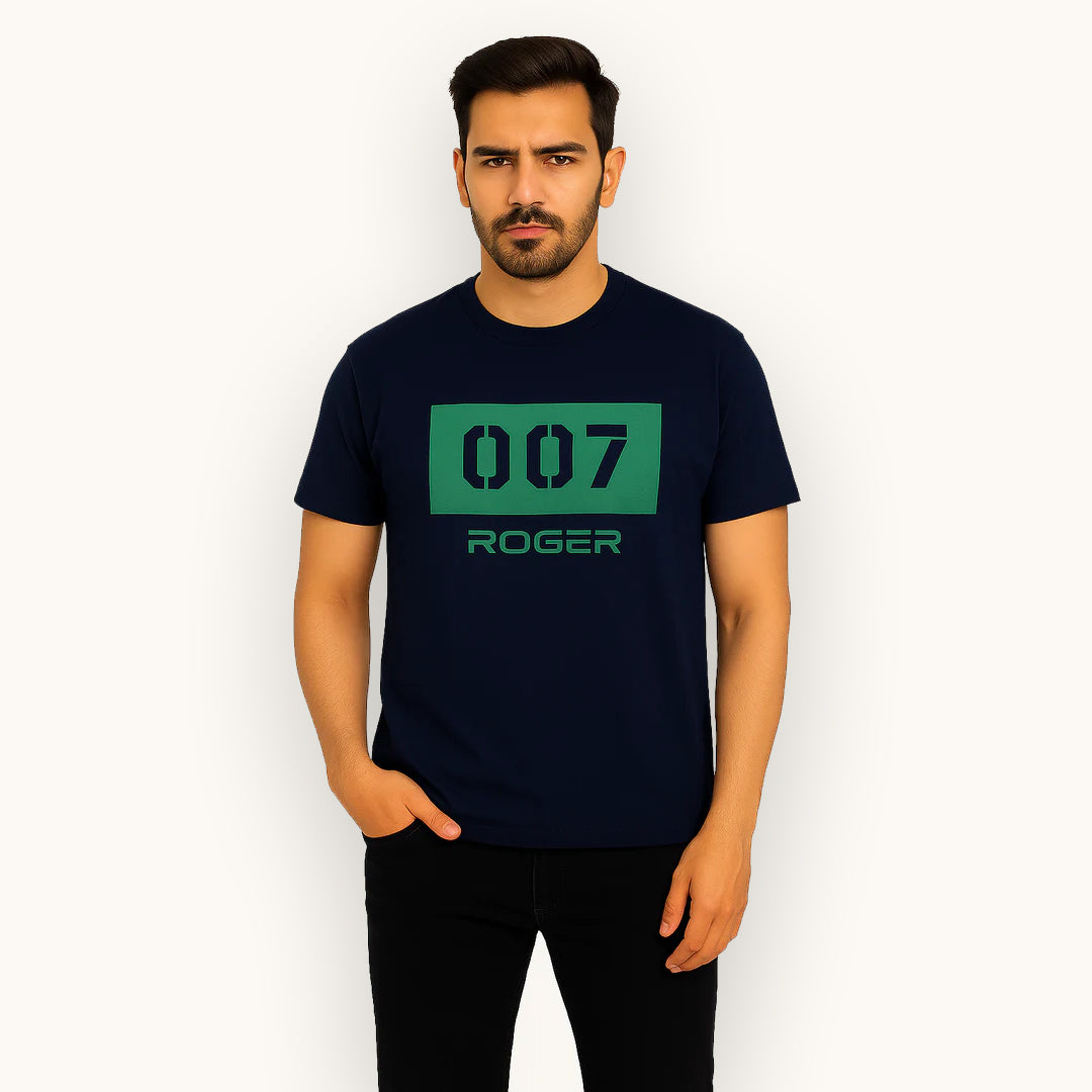 NAVY BLUE "007" PRINT T-SHIRT FOR MEN