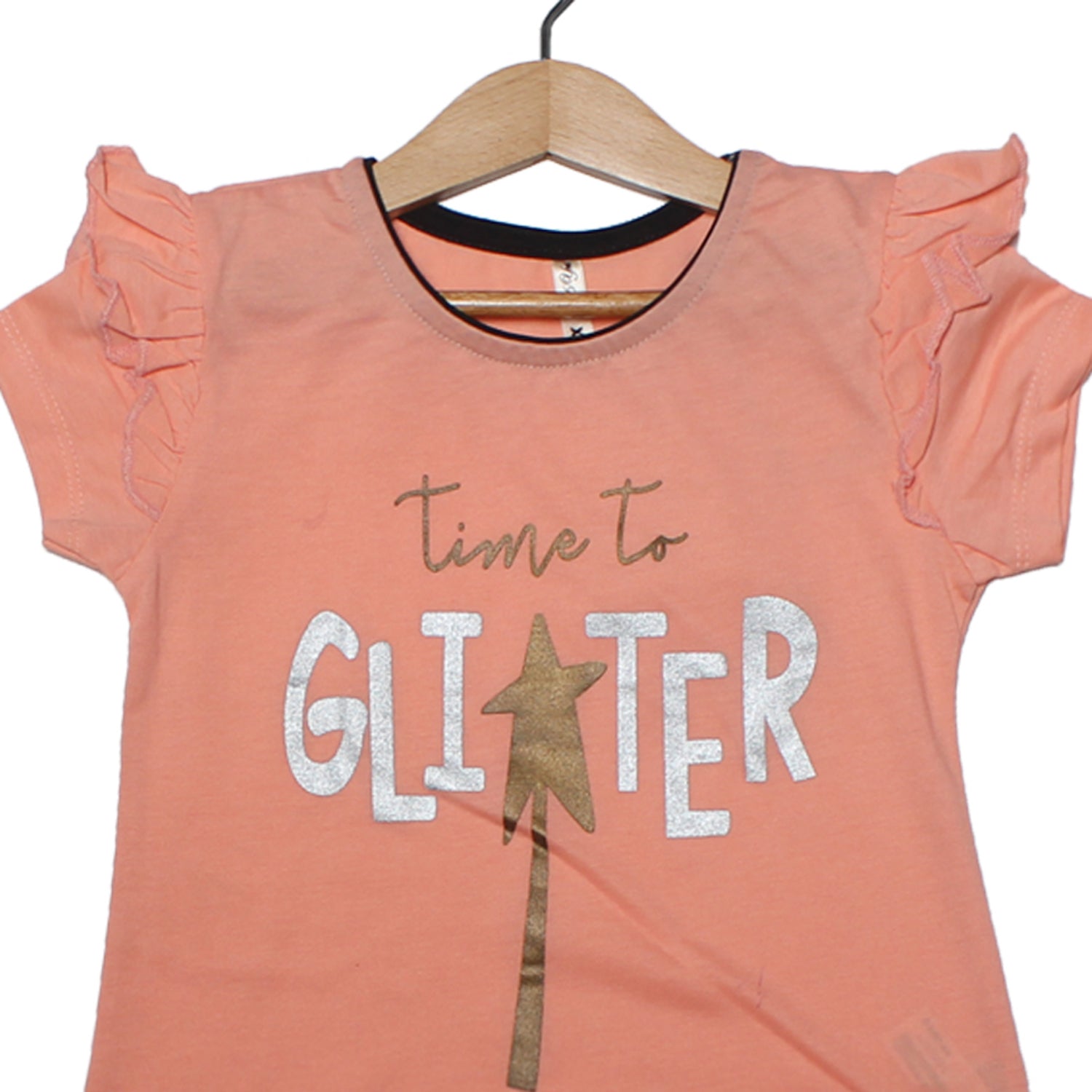 NEW PEACH TIME TO GLITTER PRINTED T-SHIRT