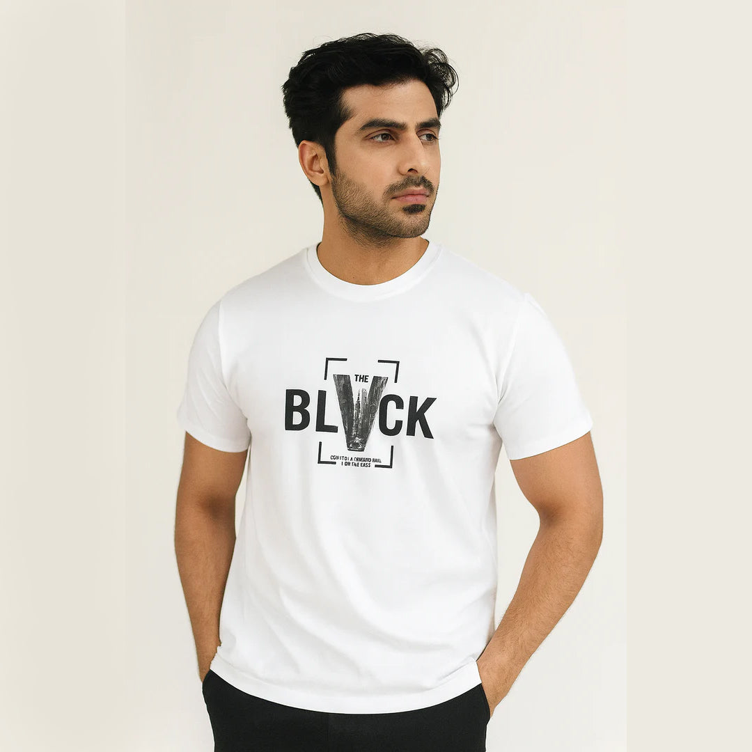WHITE "BLACK" PRINT T-SHIRT FOR MEN