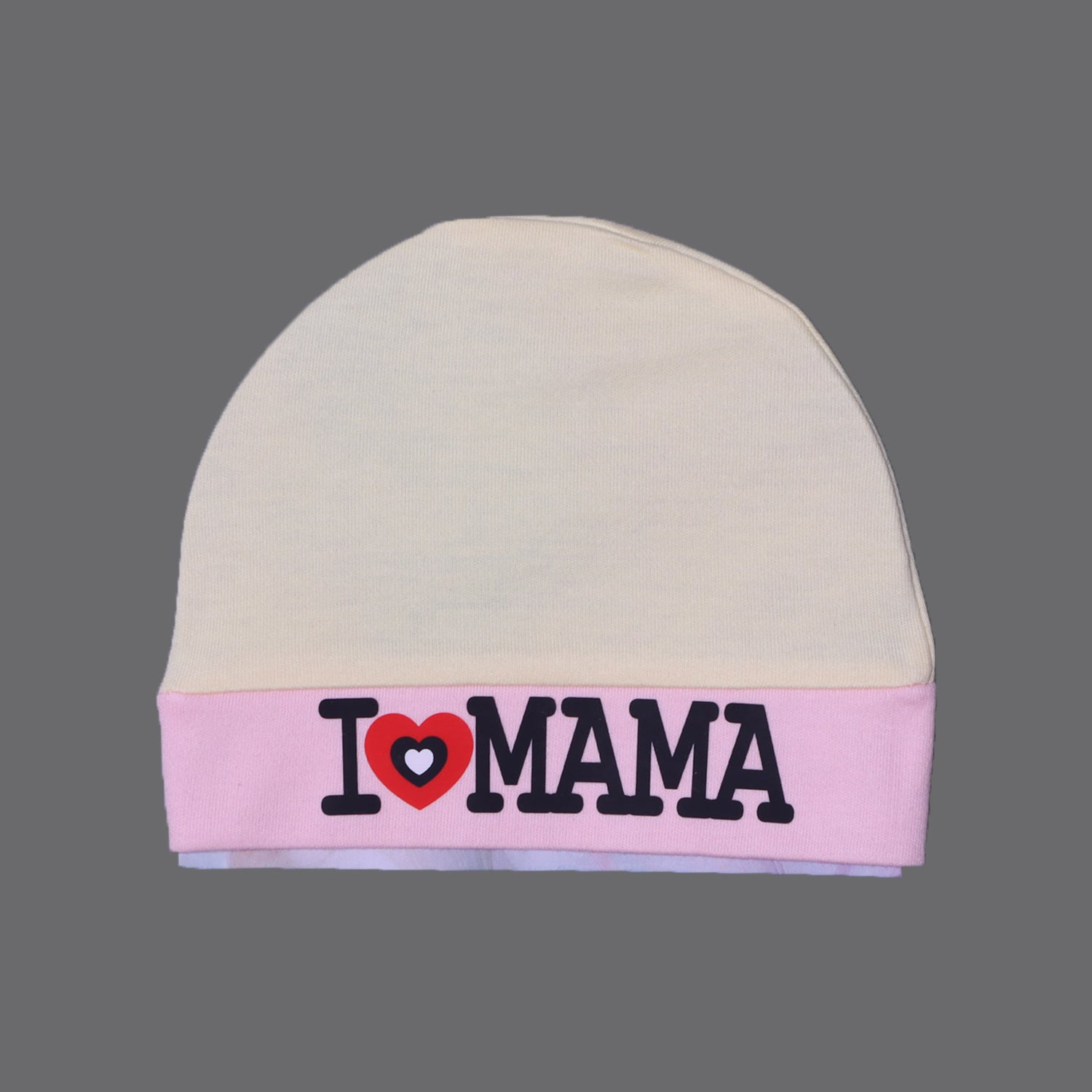YELLOW & PINK "I LOVE MAMA" PRINTED CAP UNISEX
