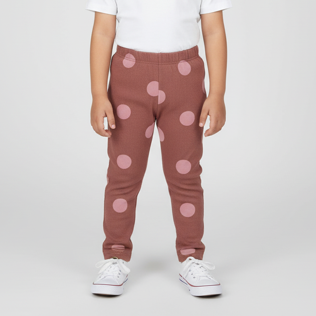 BROWN POLKA DOTS PRINTED HEAVY RIBBED FABRIC PAJAMA FOR GIRLS