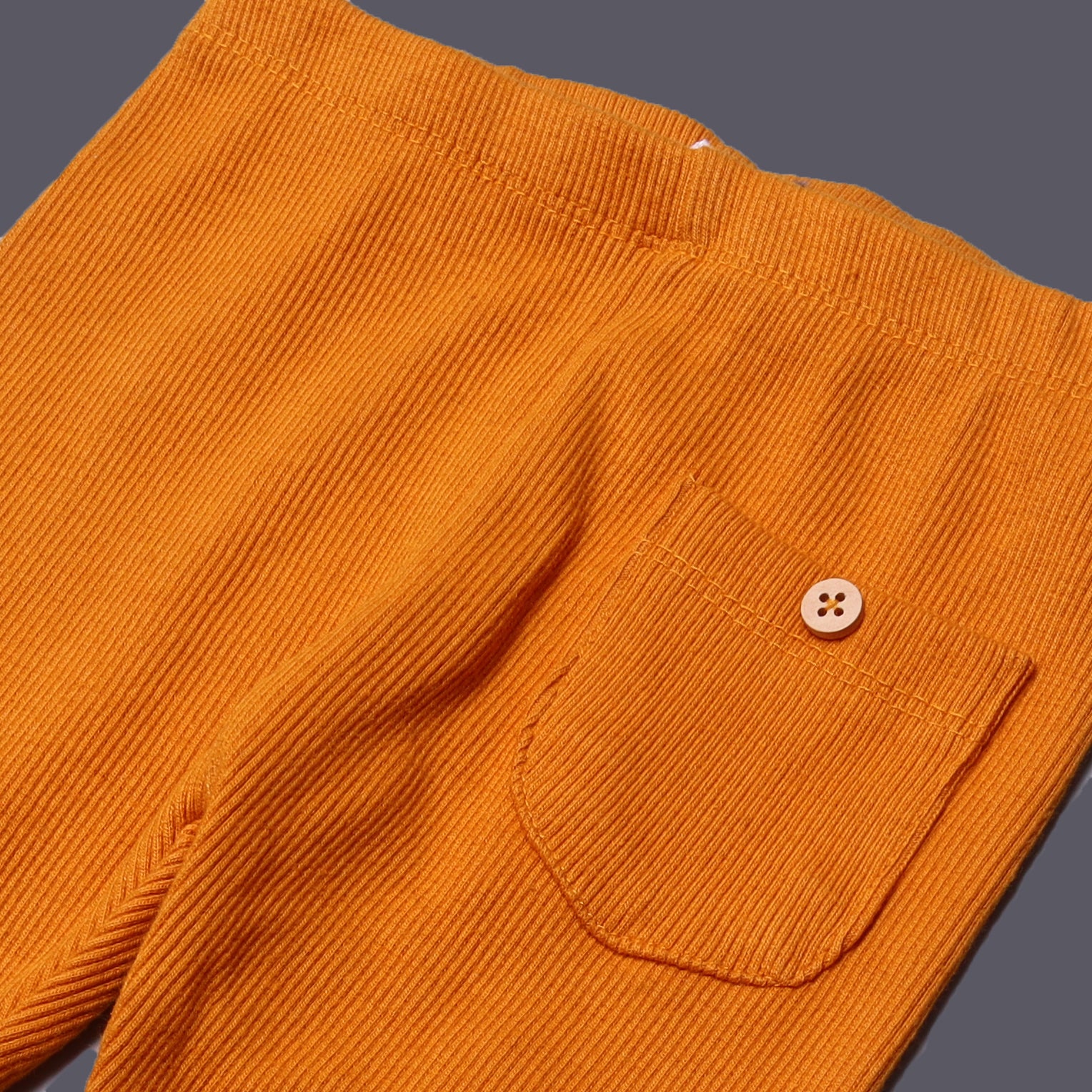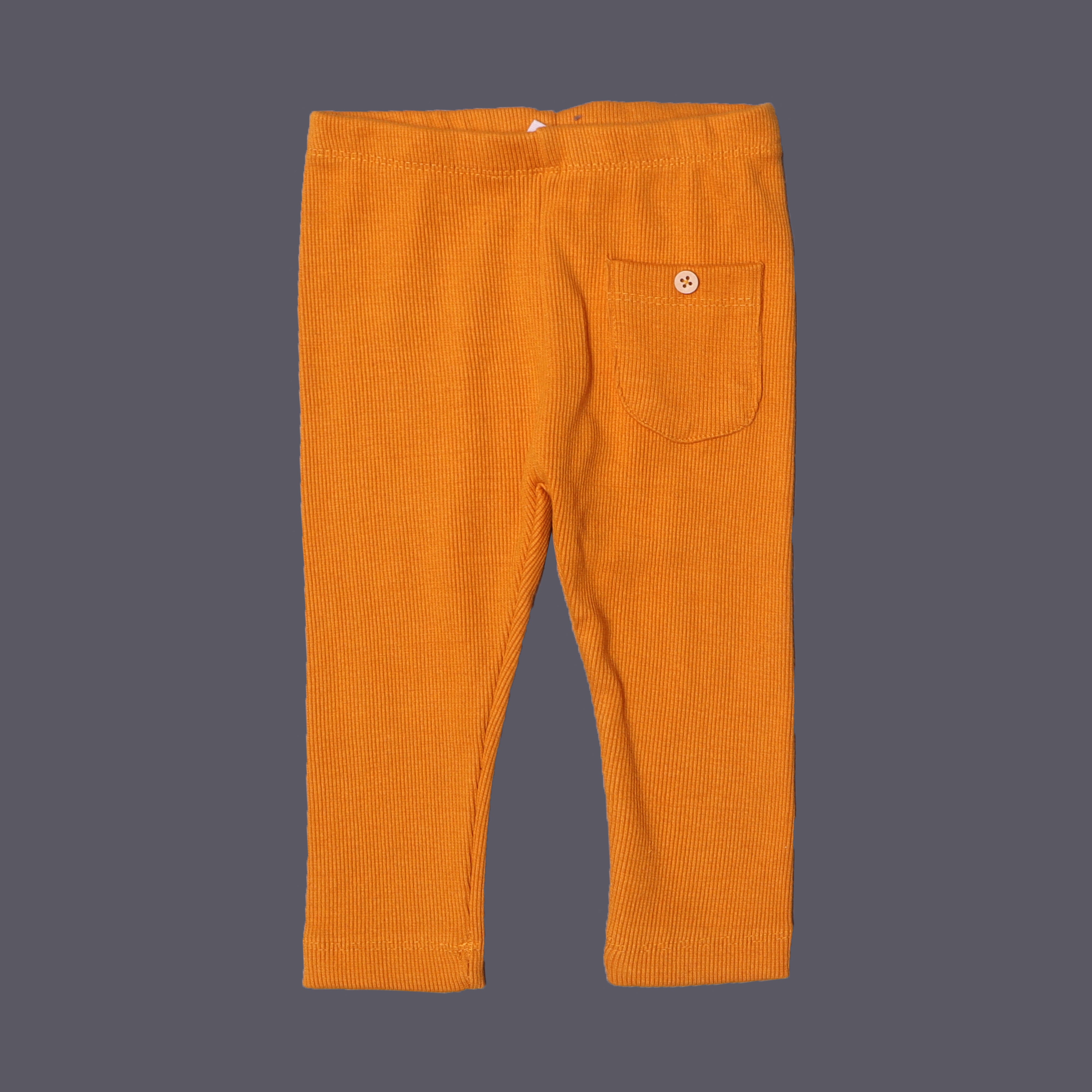 MUSTARD PLAIN WITH BACK POCKET RIBBED FABRIC PAJAMA TROUSER