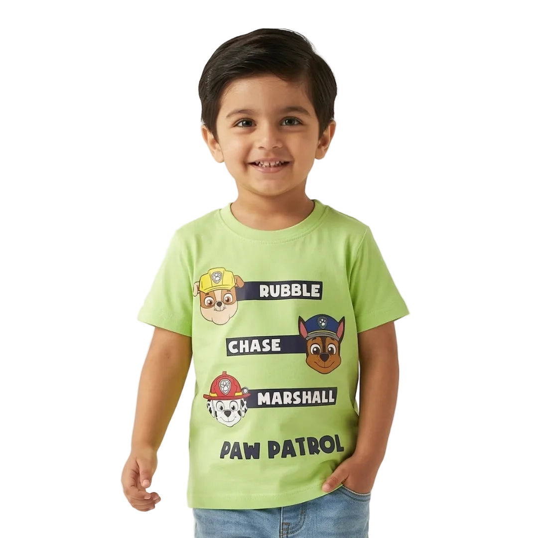 Introducing our new light green Paw Patrol printed branded half sleeves t-shirt for boys. Made with high-quality material, this t-shirt offers comfort and style for your little one. Perfect for any casual occasion, let your child show off their love for Paw Patrol while looking fashionable.
