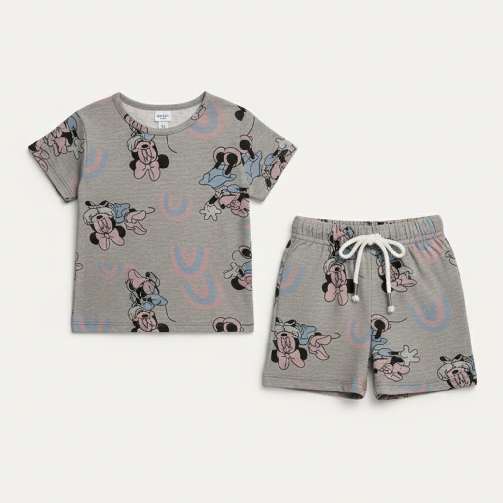 Every girl loves Minnie Mouse, and now she can wear her favorite character in style! This adorable grey suit features a charming Minnie Mouse print that brings magic to her everyday wardrobe. Crafted from soft, stretchy cotton jersey fabric, it's supremely comfortable for all-day wear—perfect for school, playtime, or family outings. The timeless grey base keeps it versatile while the iconic print adds that extra dose of fun and personality she craves. Durable and easy to care for, this suit is ready for whatever adventures come her way!