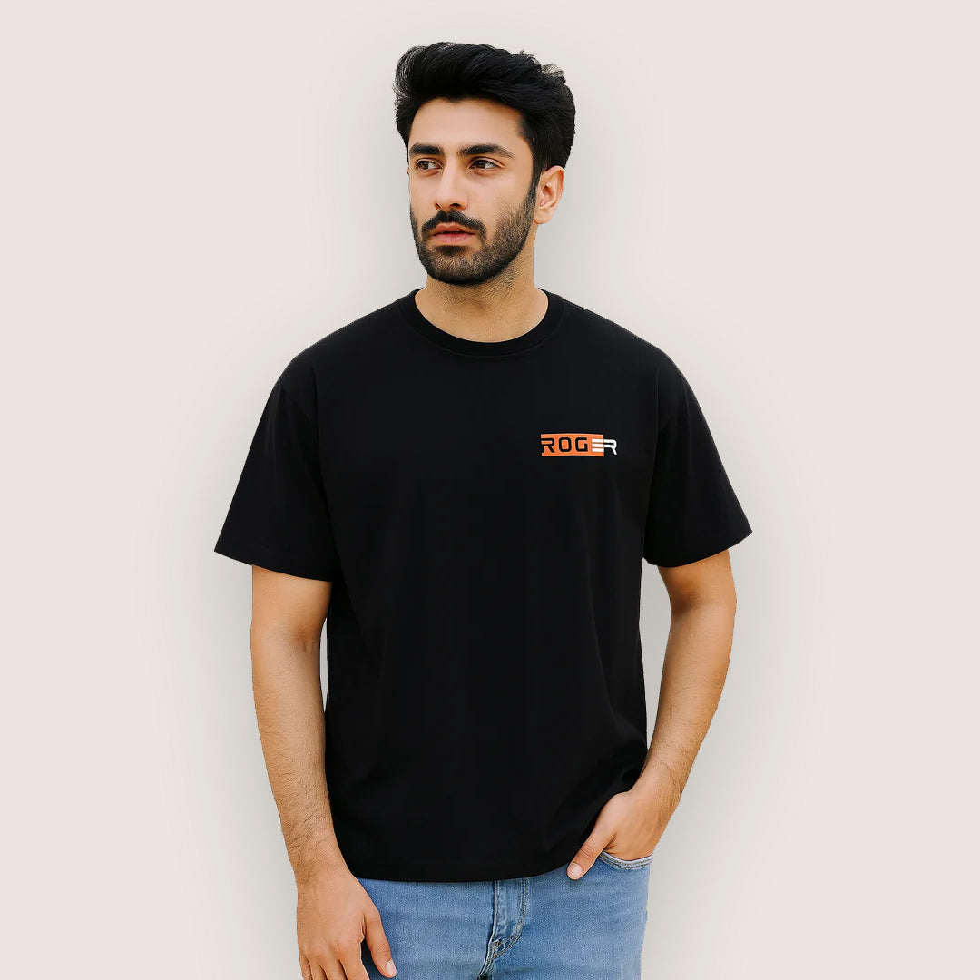 Add a bold twist to your casual look with the Black "Roger" Print T-Shirt for Men. Its striking design brings fun and flair to your everyday style, making it perfect for standing out at any hangout or weekend adventure. Comfortable and cool, this tee is your new go-to for effortless charm.