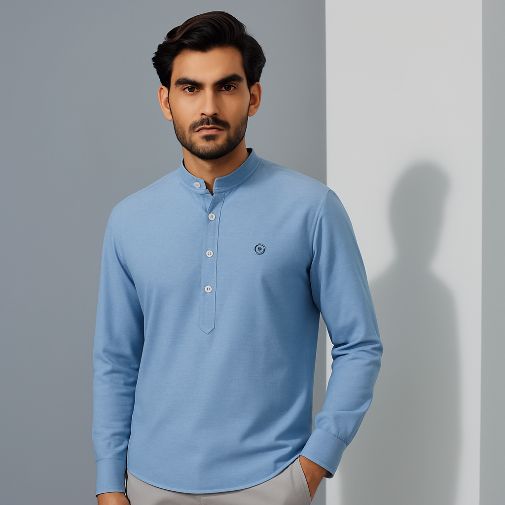 SKY BLUE KURTI STYLE - PREMIUM QUALITY CASUAL SHIRT FOR MEN