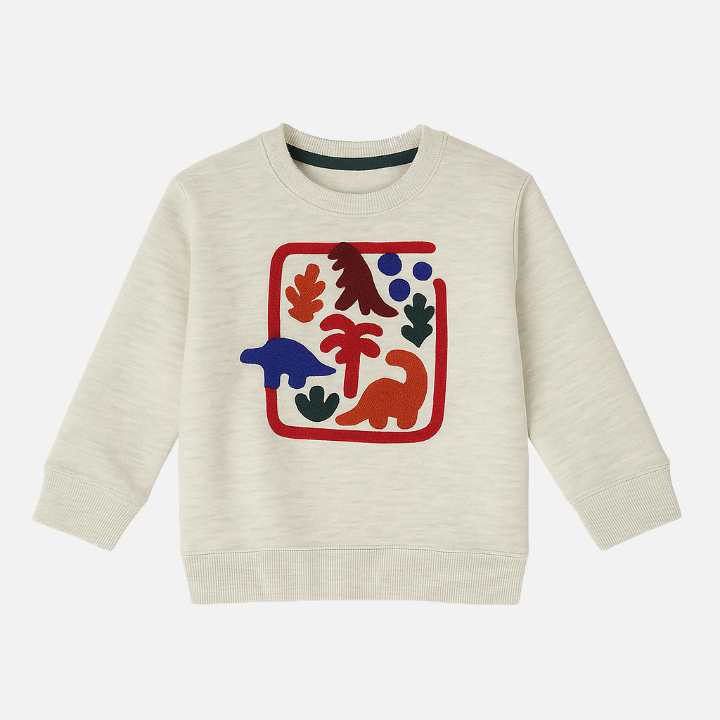 Step into playful comfort with the Ash White Dino Embroidered Terry Fabric Sweatshirt. Made from soft terry fabric, it keeps you cozy while the adorable dinosaur embroidery adds a fun, lively touch to your casual style. Perfect for bringing a little prehistoric charm to your day!