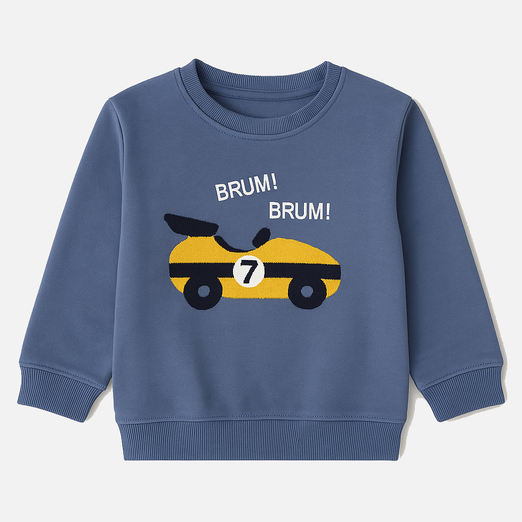Zoom into cozy comfort with the Blue Car Embroidered Terry Fabric Sweatshirt! Crafted from soft terry fabric, it offers warmth and a playful vibe with its fun car embroidery. Perfect for casual days filled with adventure and style.
