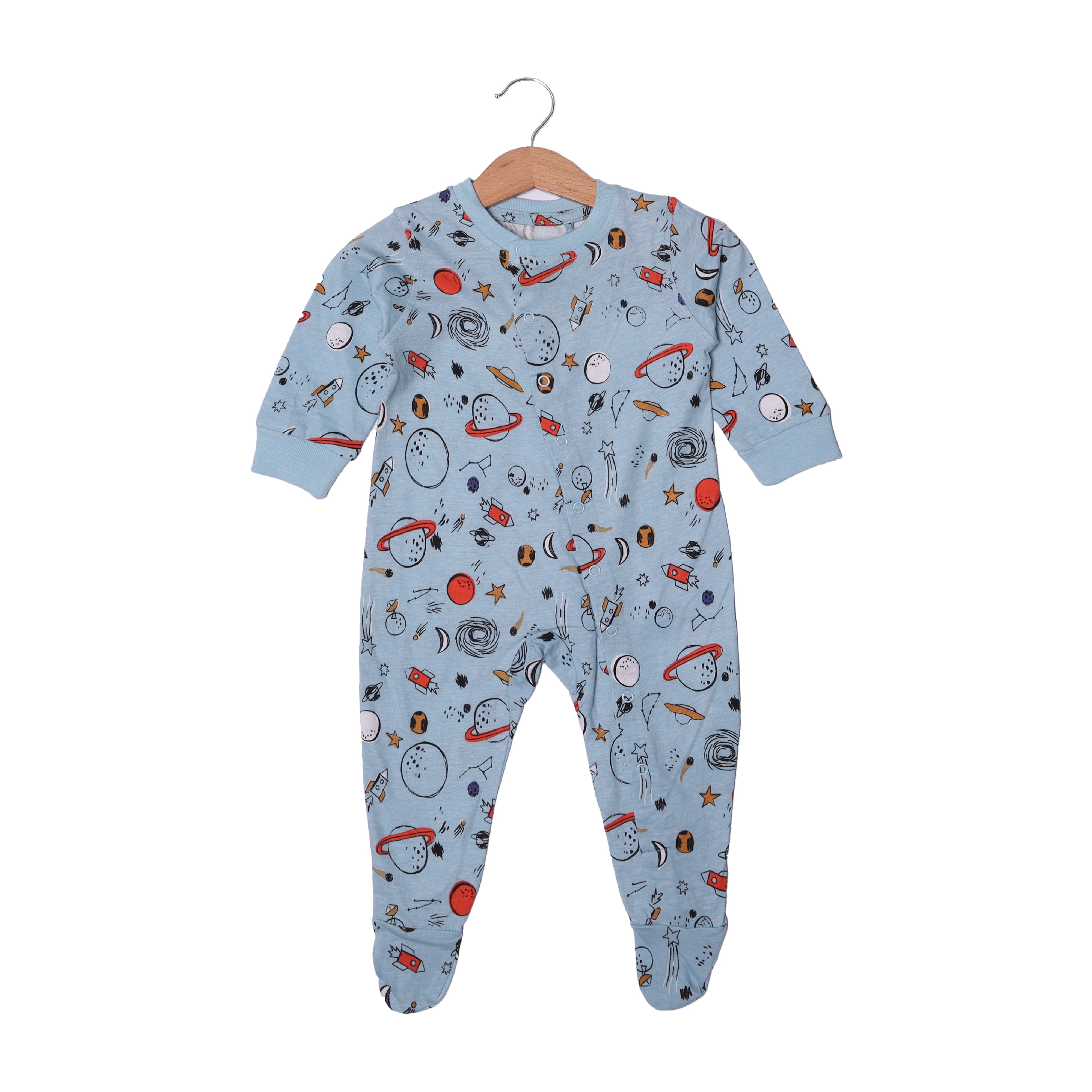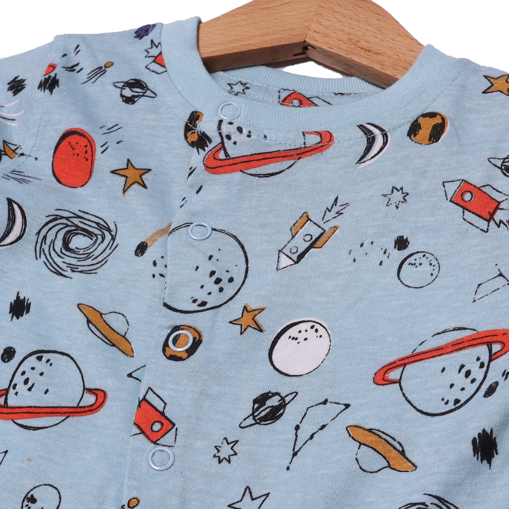 BLUE PLANETS & U.F.O PRINTED FULL BODY FULL SLEEVES ROMPERS