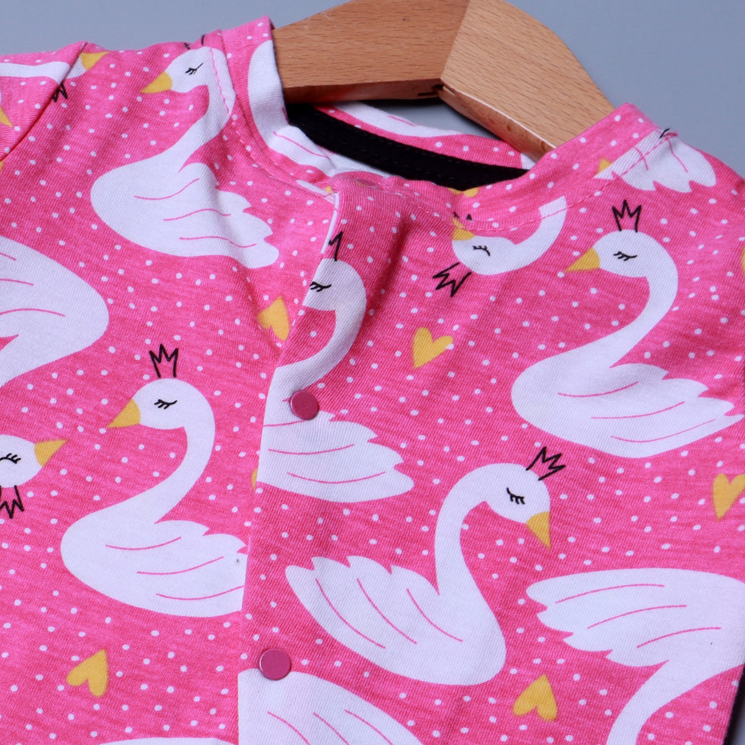 BLUSH PINK DUCK WITH CROWN PRINT FULL BODY FULL SLEEVES ROMPERS