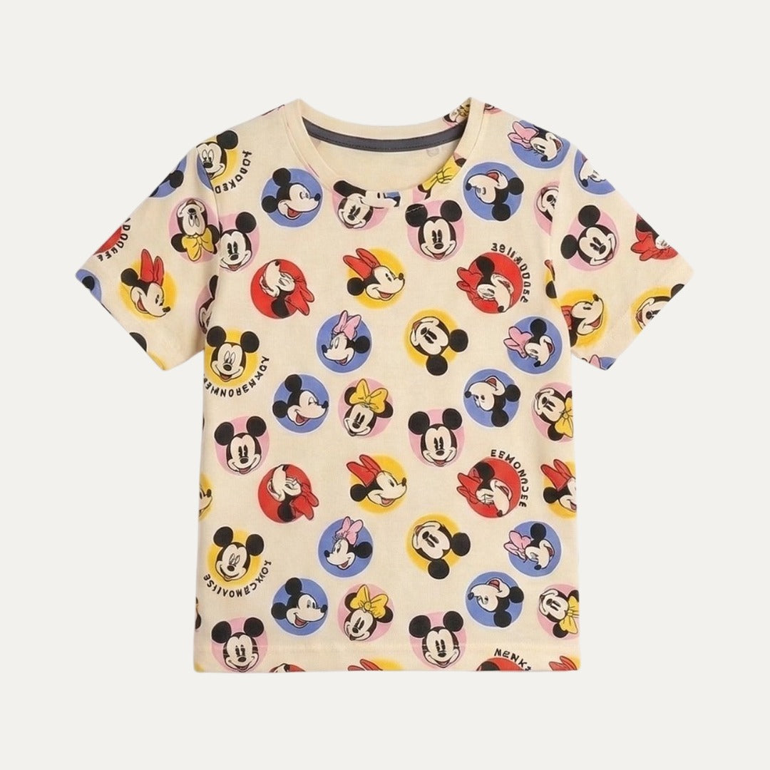 Introduce your little one to timeless Disney charm with this cream-colored half-sleeve t-shirt featuring beloved Mickey & Minnie characters. Crafted for comfort and durability, this casual essential combines soft fabric with vibrant, eye-catching prints that kids adore. Perfect for everyday wear, playdates, or themed outings, it's a wardrobe staple that brings joy and style together. Easy to care for and designed to withstand active play, this tee is sure to become a favorite in his collection.