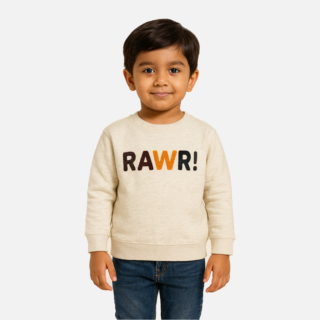 Unleash your playful roar with the Cream Rawr Embroidered Fleece Fabric Sweatshirt! Made from soft, cozy fleece, it keeps you warm while the fun “Rawr” embroidery adds a lively, adventurous touch to your look. Perfect for staying comfy with a wild side!