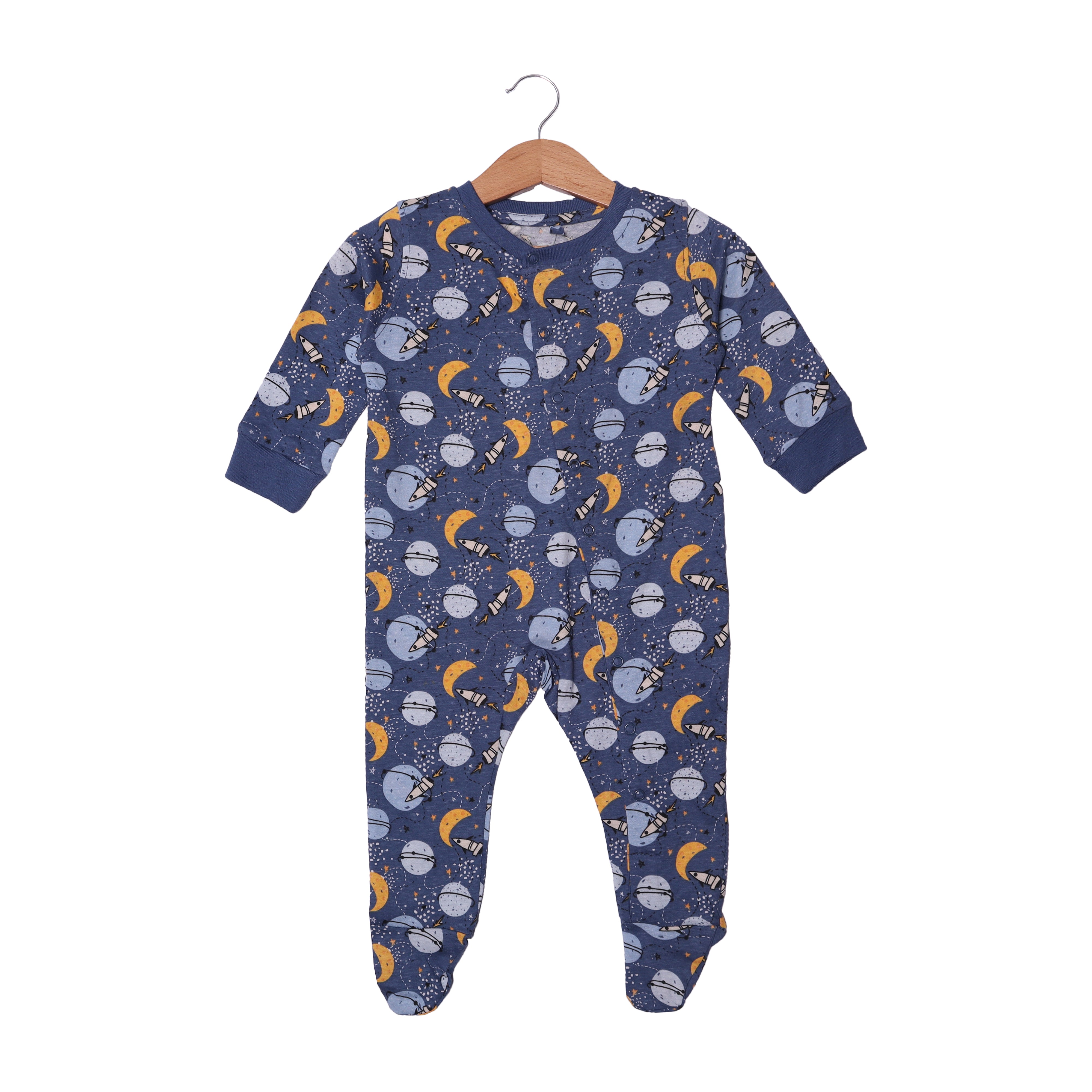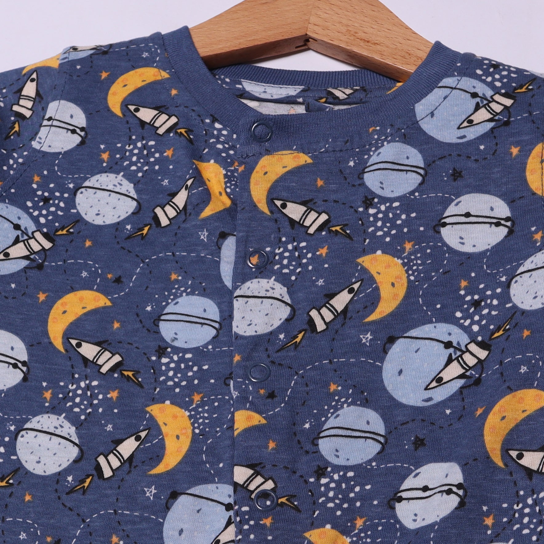 DARK BLUE PLANETS & MOON PRINTED FULL BODY FULL SLEEVES ROMPERS