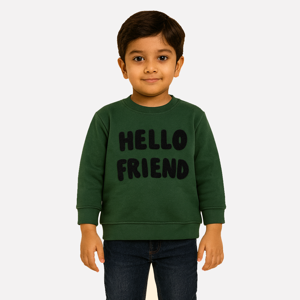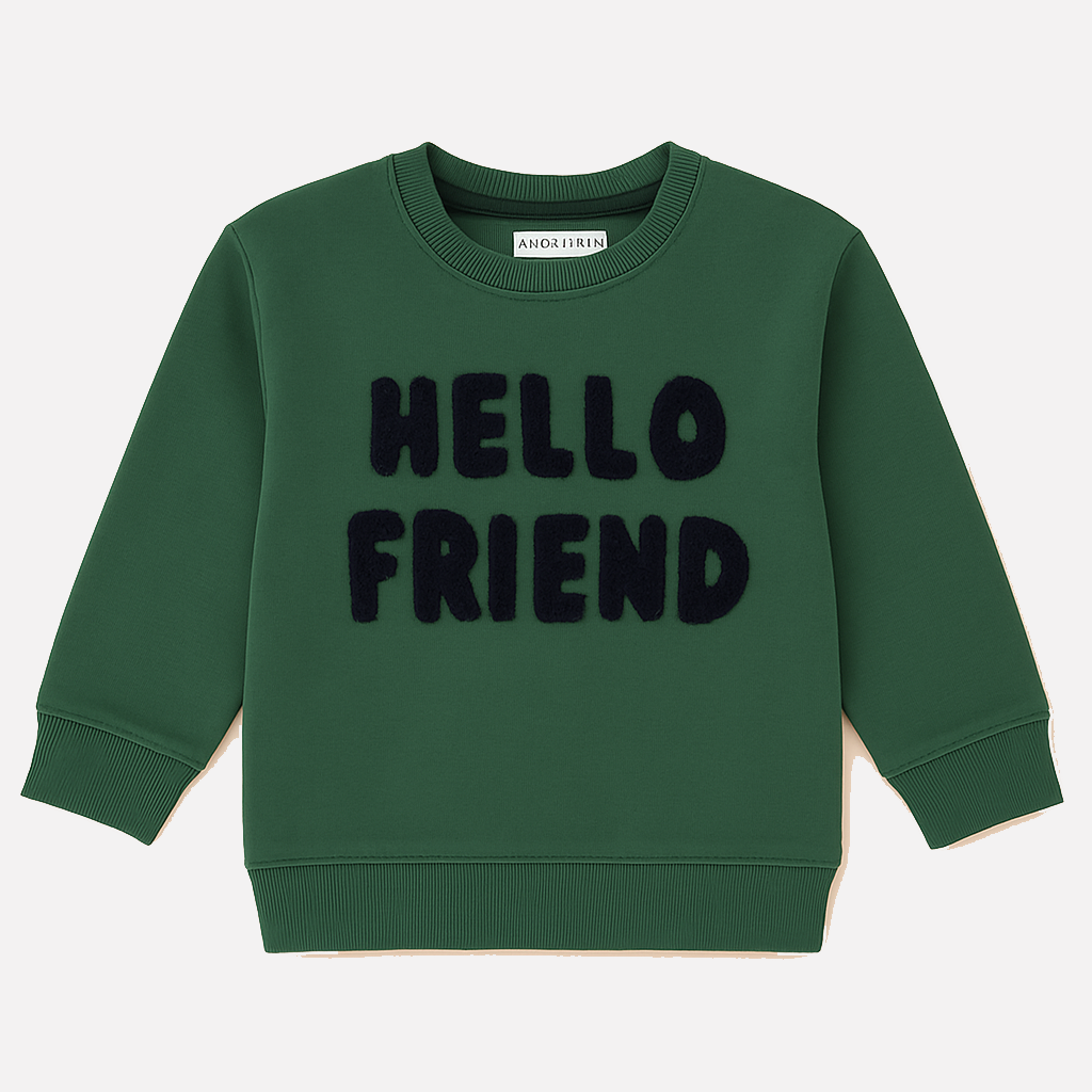 Green Hello Friend Terry Fabric Sweatshirt