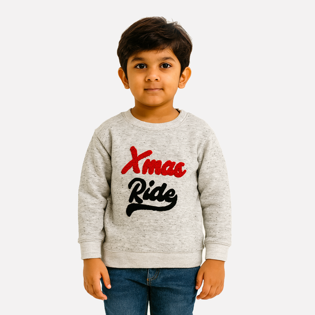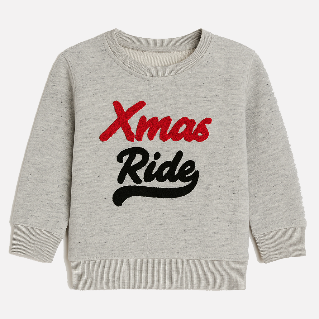 Grey Xmas Ride Terry Fabric Sweatshirt