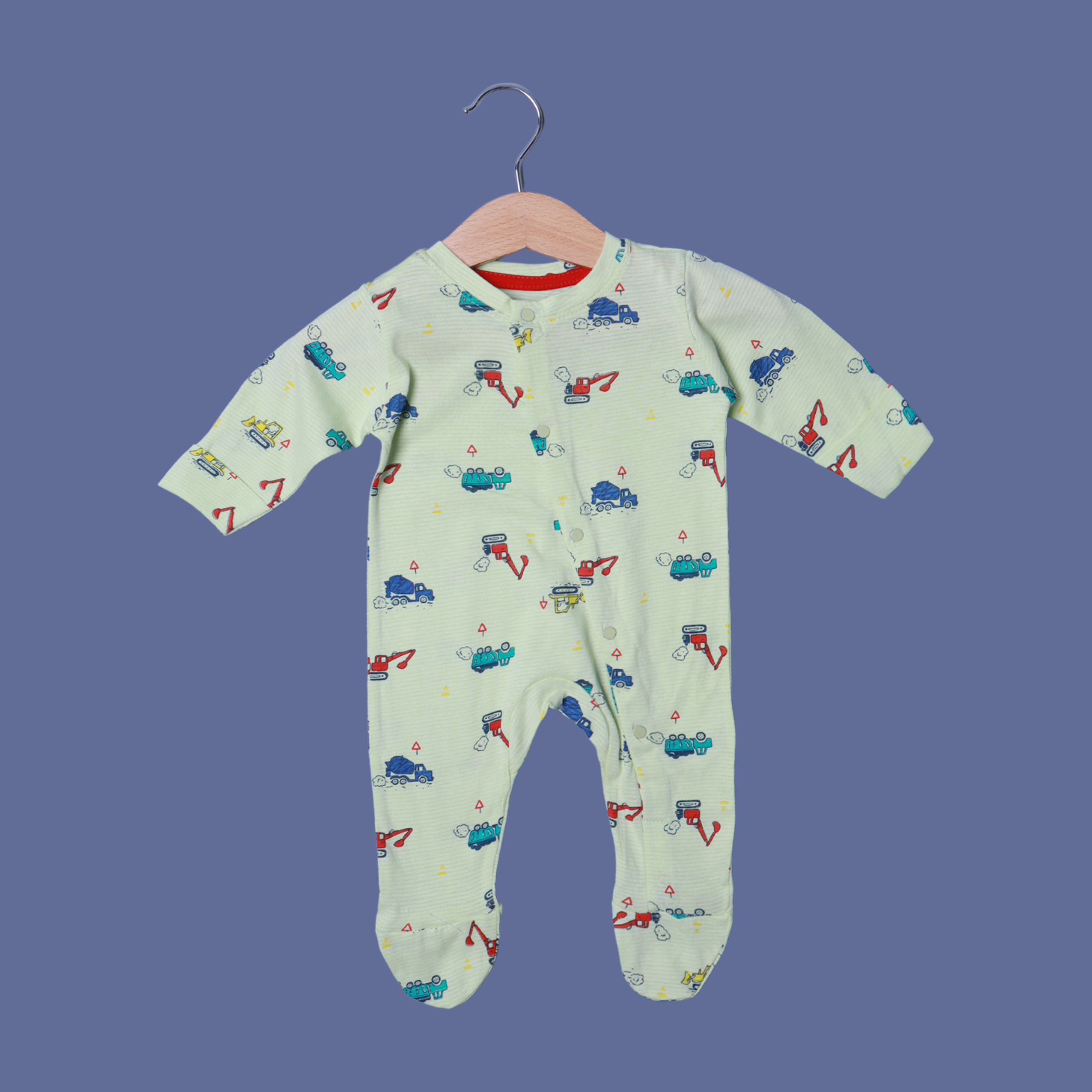 LIGHT GREEN TRUCKS PRINT FULL BODY FULL SLEEVES ROMPERS
