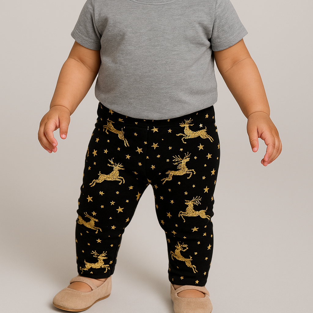 NEW BLACK WITH GOLDEN HORSE PRINTED TIGHTS FOR GIRLS