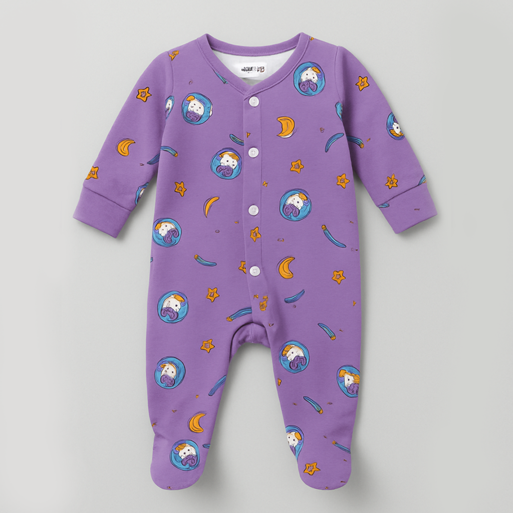 Make winter quack-tastic with this purple romper featuring cute duck prints. Soft and snuggly, it keeps your little one warm while adding a fun splash of playful charm to chilly days. Perfect for cozy cuddles and joyful adventures!