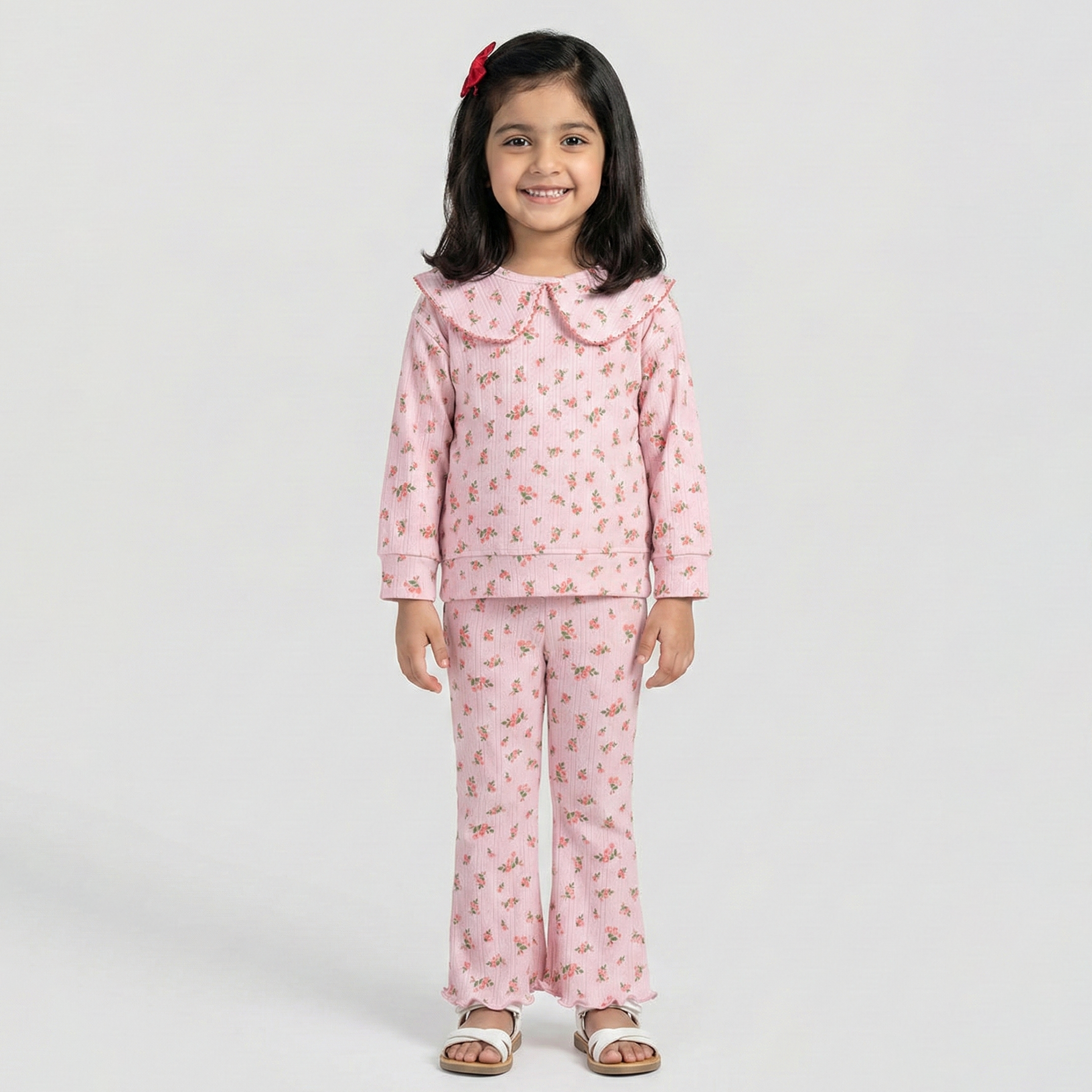Brighten her wardrobe with this cheerful yellow flowers print shirt paired with matching trousers! Perfect for special occasions, school events, or everyday wear, this coordinated suit combines comfort with style. The vibrant floral design adds a fun, youthful touch that girls love, while the quality fabric ensures durability through all her adventures. Easy to mix and match with other pieces, this two-piece set is a versatile addition to any young fashionista's closet.