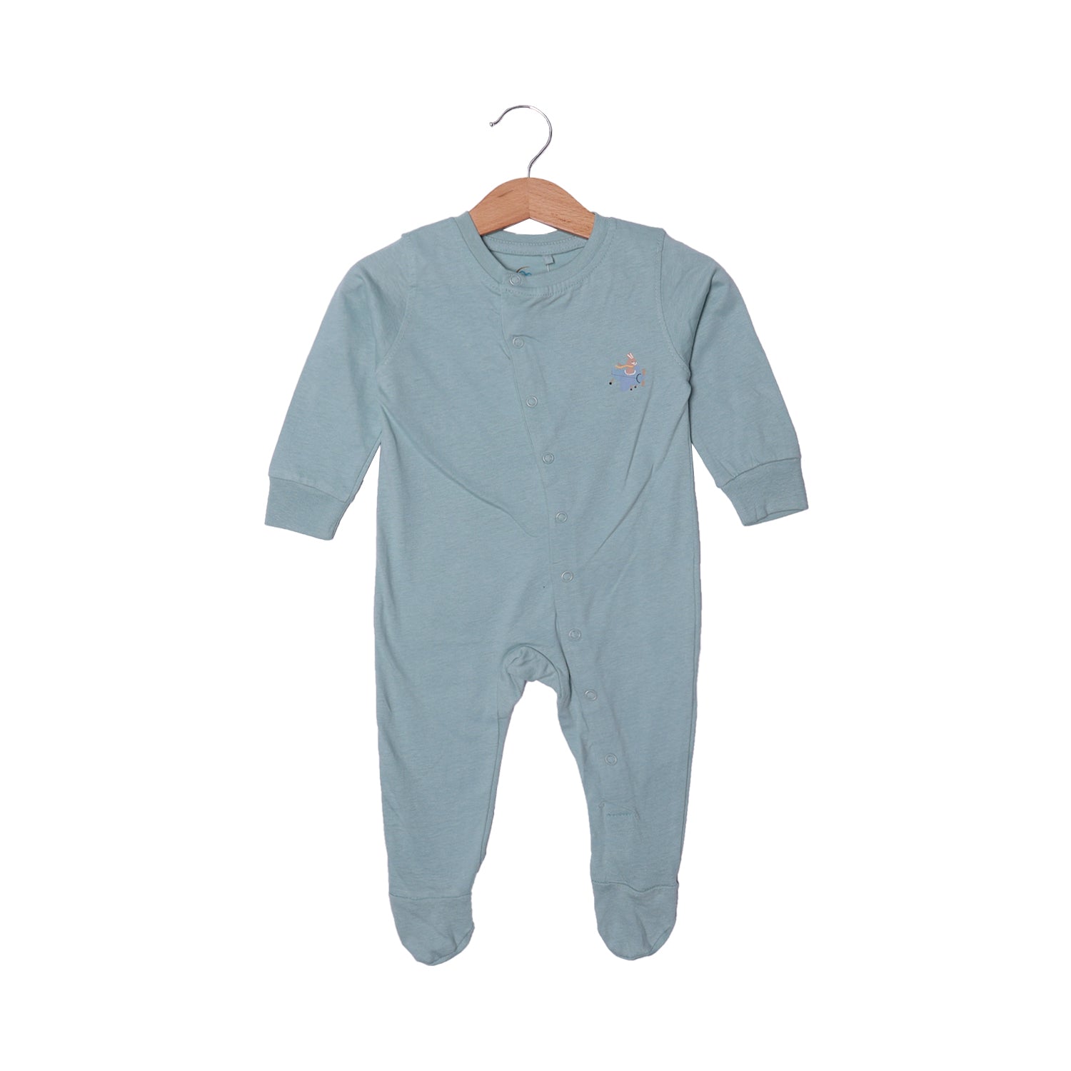 SKY BLUE AEROPLANE & RABBIT PRINTED FULL BODY FULL SLEEVES ROMPERS