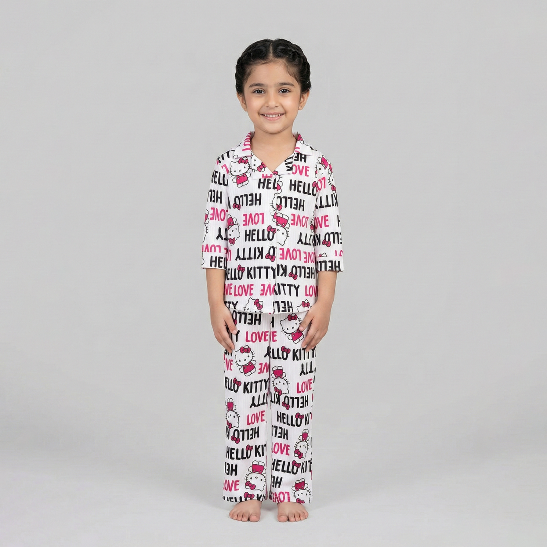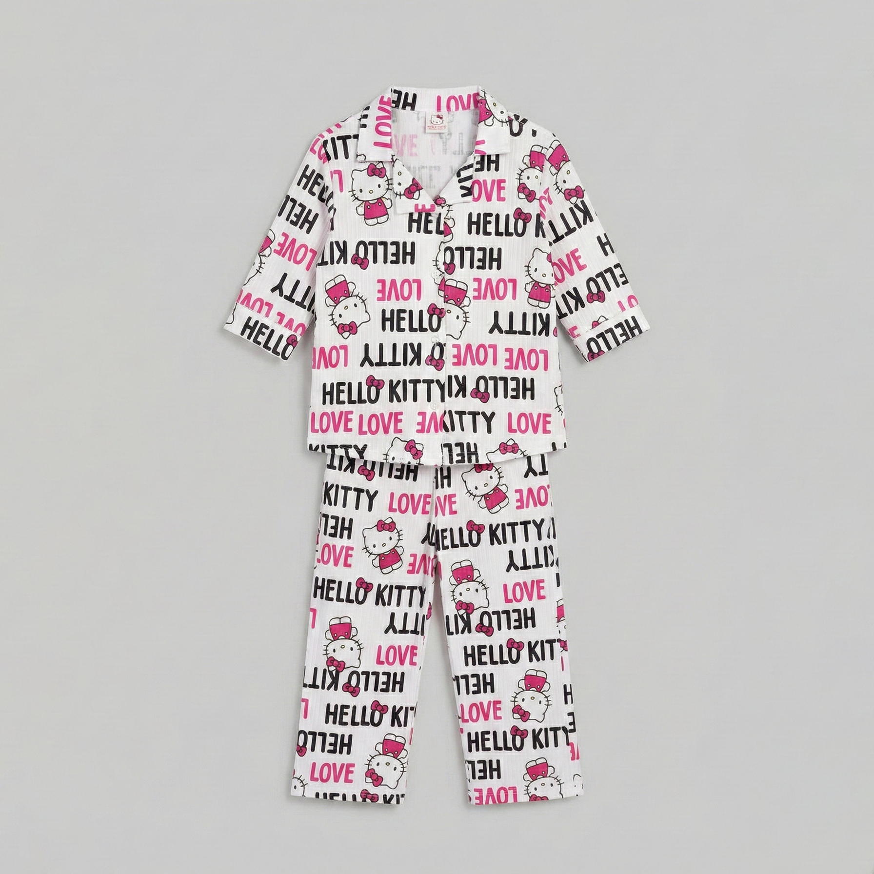 Meet the ultimate cute companion outfit! This white Hello Kitty shirt and trouser combo brings iconic charm to her everyday style. Featuring the beloved character that girls adore, this two-piece set delivers comfort without compromising on fun. The crisp white base pairs perfectly with any accessories, making it versatile for school, playtime, or casual adventures. Soft, breathable fabric ensures she stays comfortable throughout the day while rocking that timeless Hello Kitty magic. A wardrobe essential that celebrates her love for this cherished character!