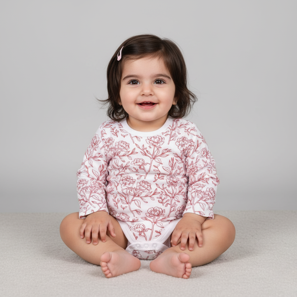 WHITE WITH RED ROSE PRINTED FULL SLEEVES HALF BODY ROMPER