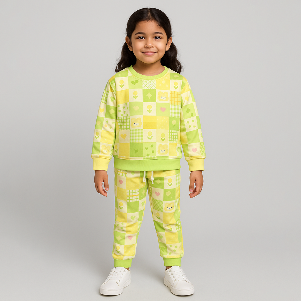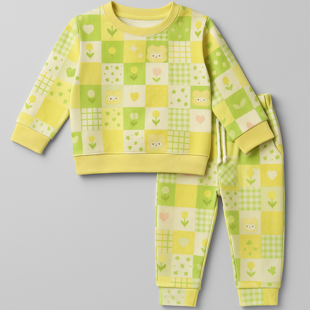 Yellow Bunny & Mix Print Fleece Fabric Suit For Winters
