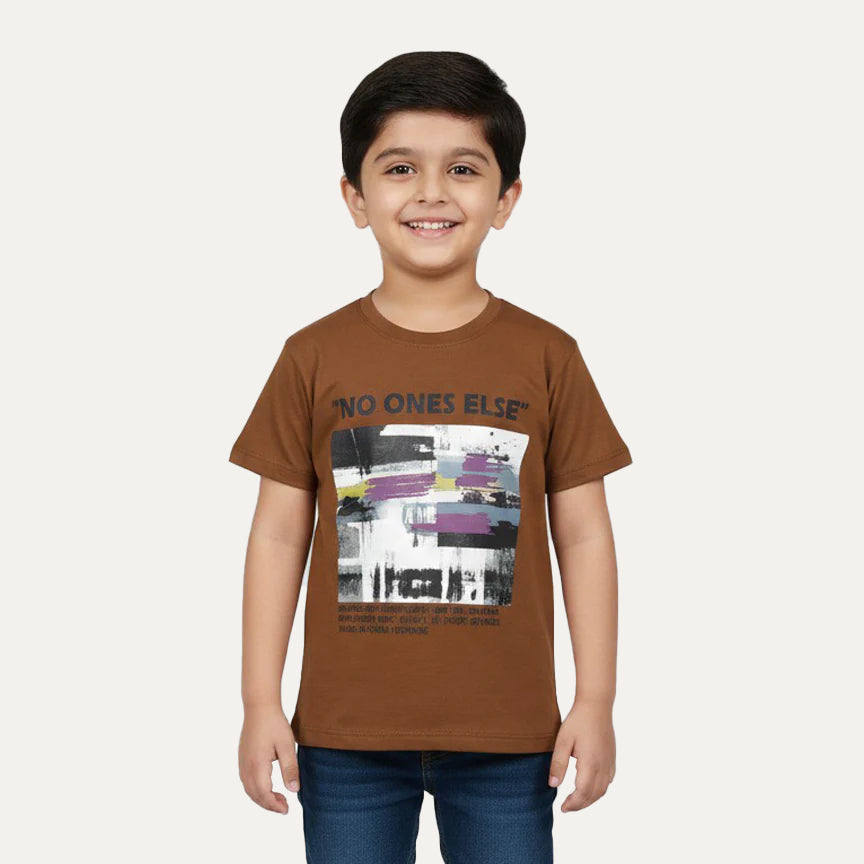 Brown No Ones Else Print Half Sleeves T-shirt For Boys