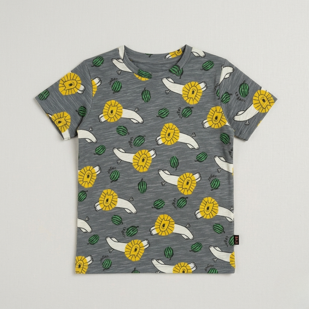 Roar into style with this dark grey lion print tee! Perfect for adventurous boys who love bold animal designs, this half-sleeve shirt combines comfort with cool factor. The striking lion graphic makes a statement while the soft fabric keeps him comfy all day long. Whether he's exploring the playground or hanging out with friends, this tee is ready for action. A wardrobe essential that lets his wild side shine!