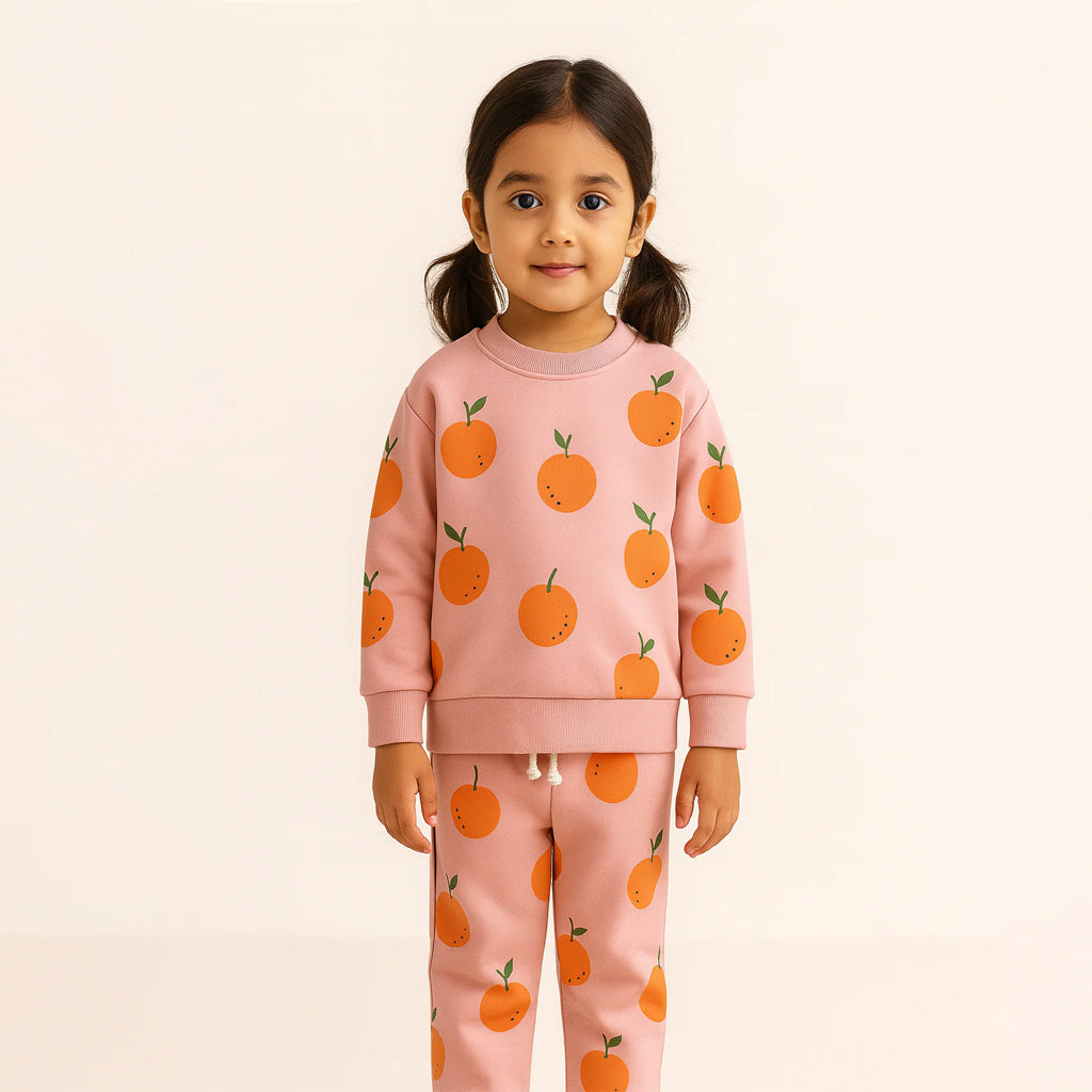 Light Purple Orange Print Terry Fabric Suit For Winters