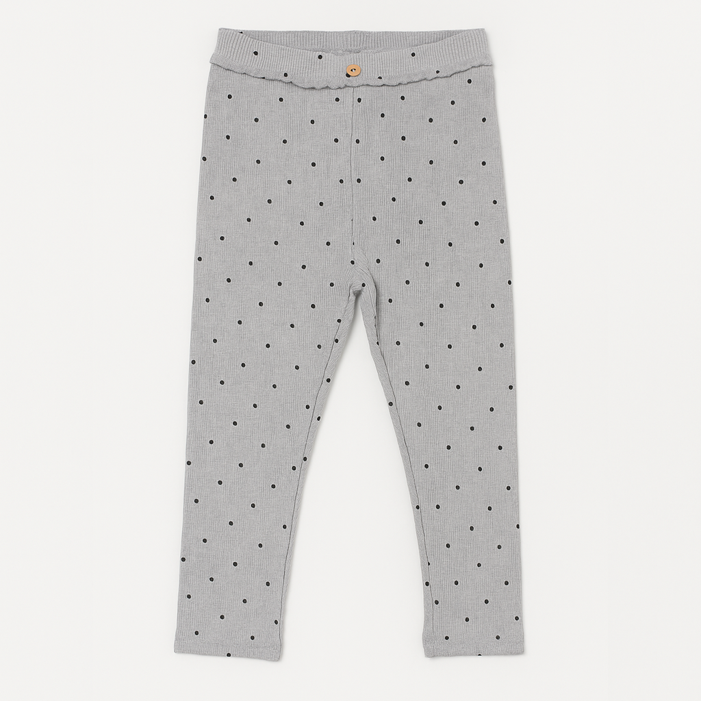 Hazel Grey Polka Dots Print Ribbed Pajama Trouser
