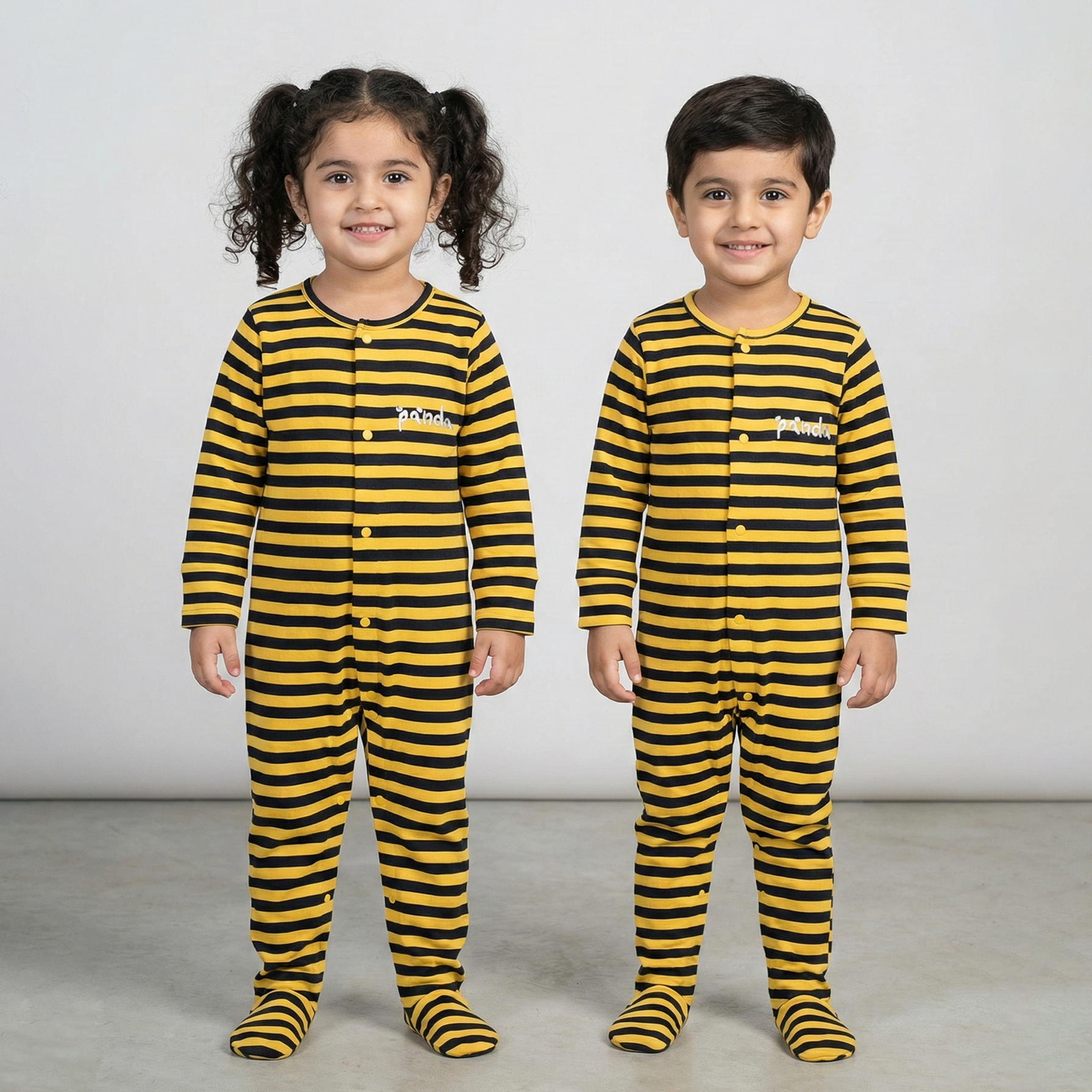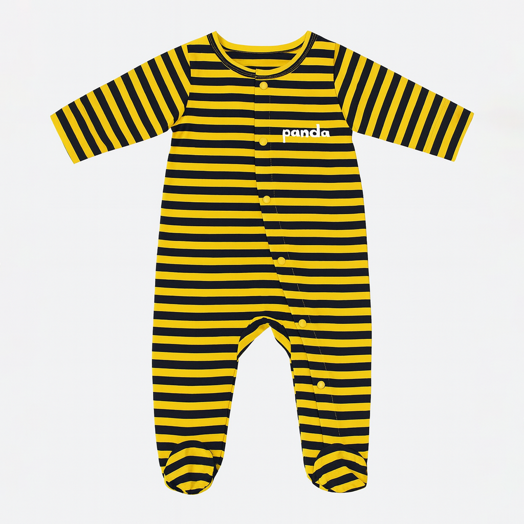 Brighten those winter days with this cheerful romper featuring sunny yellow fabric accented with bold black panda stripes! Your child will radiate joy in this playful one-piece that combines warmth with personality. The soft, cozy material wraps little ones in comfort while the striking panda pattern adds a fun, quirky touch to their cold-weather wardrobe. Perfect for making a statement while staying snug and toasty!