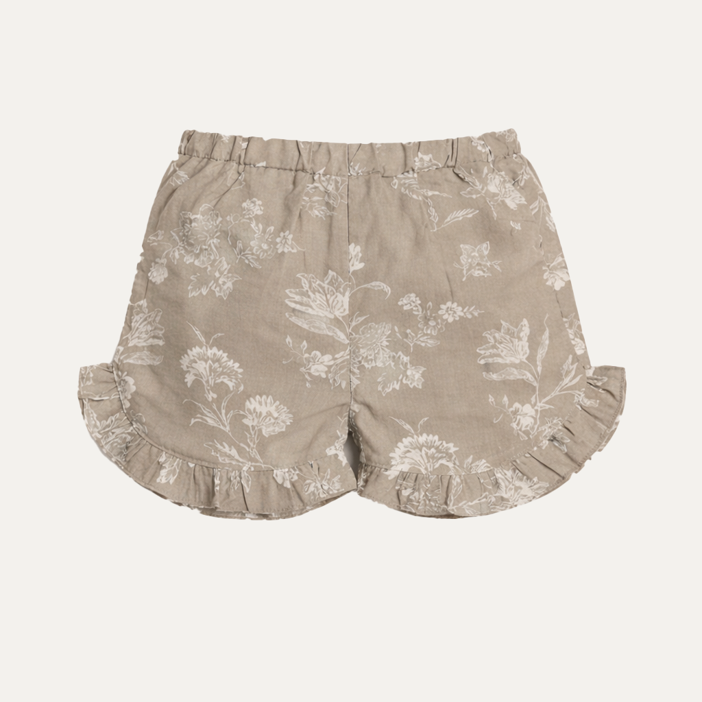 Comfortable and stylish grey shorts featuring a delicate floral print, perfect for active girls. Made from soft, breathable fabric that moves with her throughout the day. The classic design pairs easily with any top, making these shorts a versatile wardrobe essential. Ideal for casual outings, playtime, or warm weather adventures. Available in multiple sizes for the perfect fit.