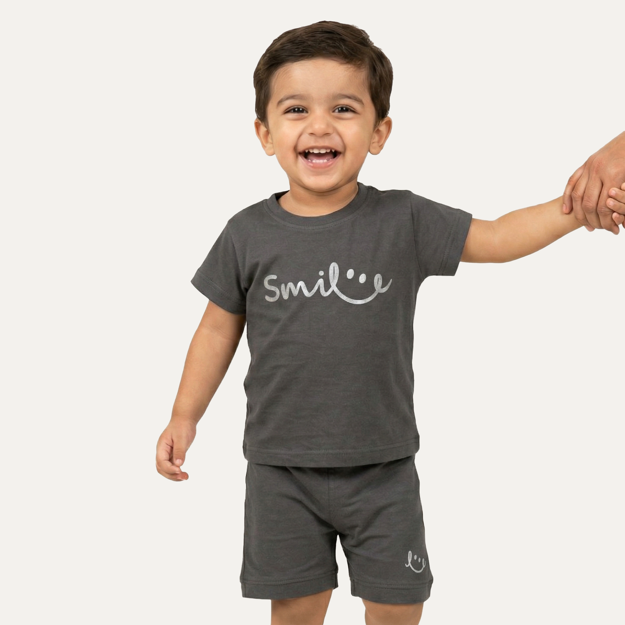 Grey Smile Print Ribbed Linen Fabric Suit For Summers