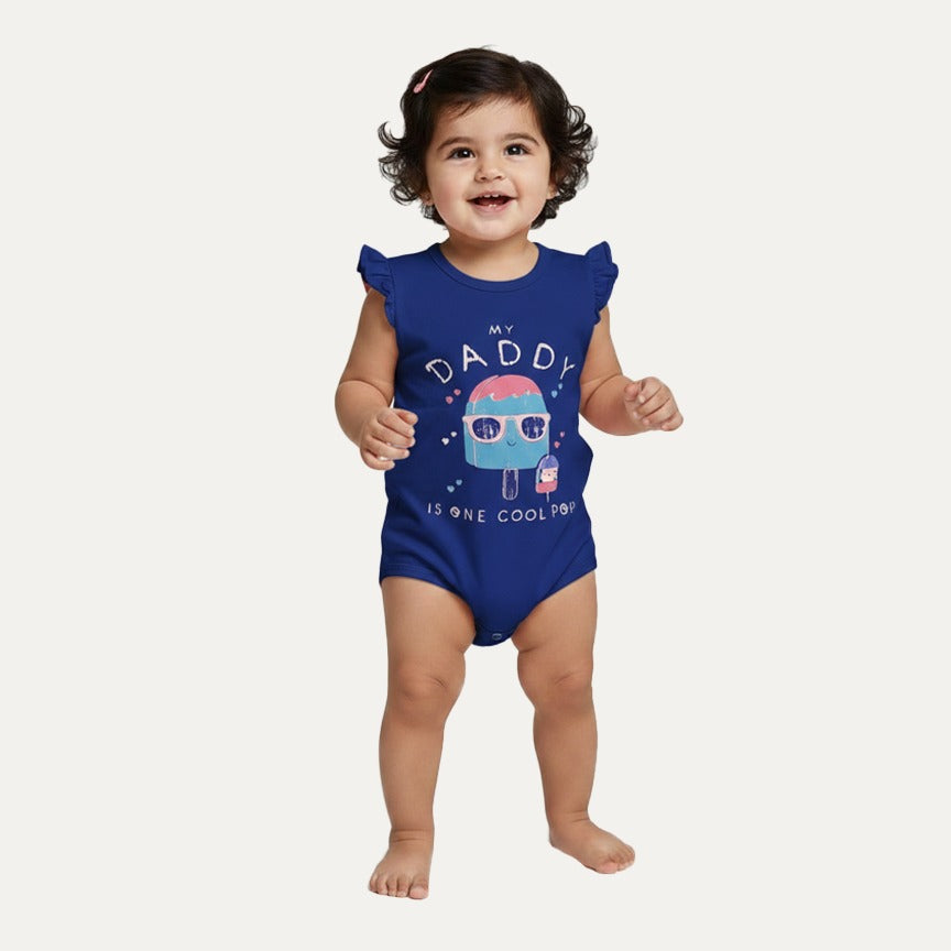 Navy Blue Daddy Cool Pop Print Half Body Romper For Summers