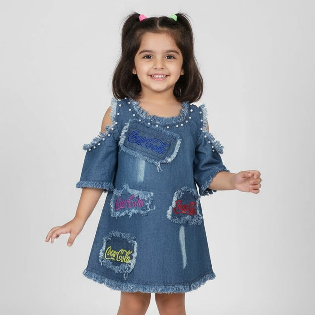Get ready to rock those sunny days in style with our Mid Blue Light Denim Cold Shoulder Top for Girls! This playful top features trendy cold shoulder cutouts and a light denim fabric that will keep your girl looking cool and feeling comfortable. Perfect for any day out in the sun!