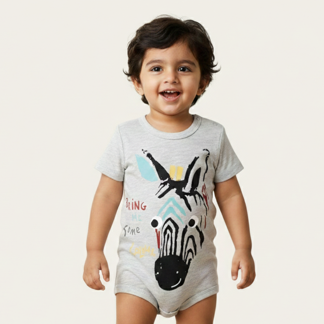 NEW GREY ZEBRA FACE PRINTED ROMPER FOR BOYS