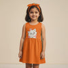 ORANGE WITH HAIR BAND KITTEN PRINT FROCK FOR GIRLS