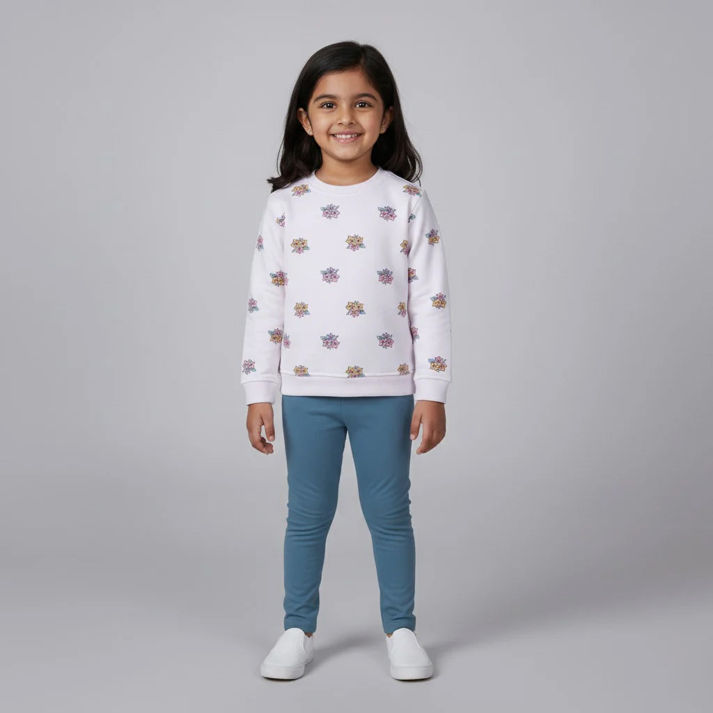 PINK WITH TEAL PAJAMA "FLOWERS" PRINT TERRY FLEECE SUIT FOR WINTERS