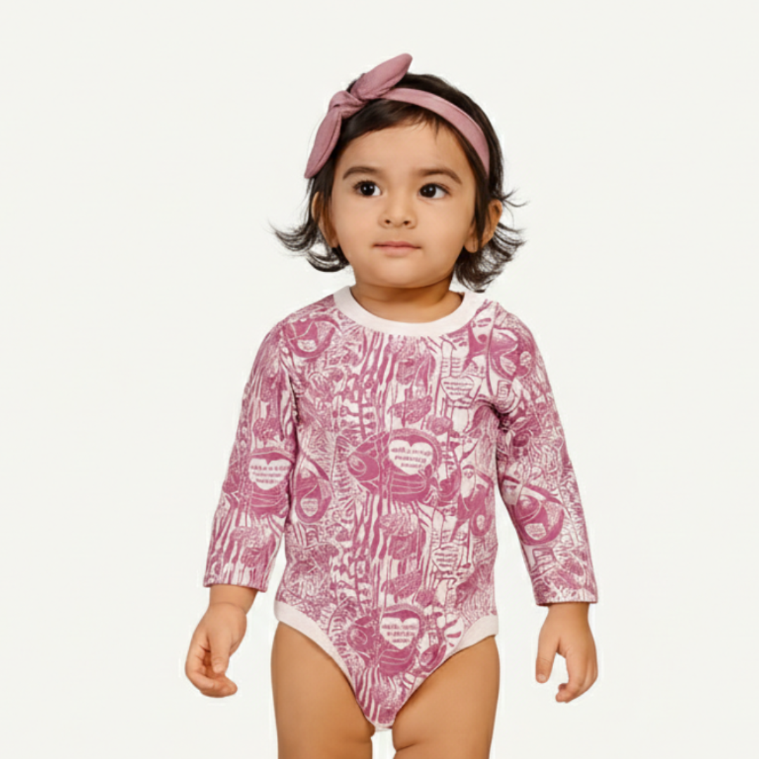 WHITE WITH PURPLE SEA ANIMALS PRINTED FULL SLEEVES HALF BODY ROMPER