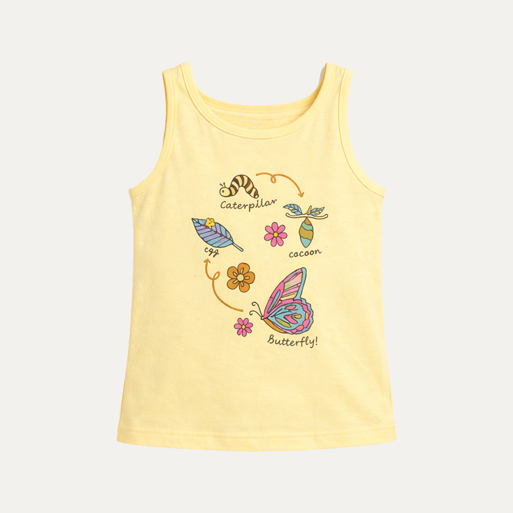 Brighten her wardrobe with this cheerful Yellow Caterpillar Print T-shirt. Featuring a vibrant caterpillar design on soft, comfortable fabric, it's perfect for everyday wear. The playful print appeals to young girls who love nature-inspired styles. Made from quality material that's easy to care for, this top combines fun fashion with durability. Ideal for school, playdates, or casual outings.
